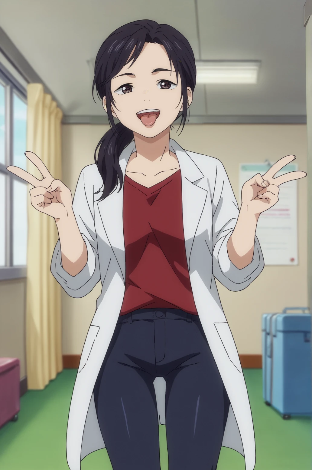 Trigger Words Optionnal: lab coat, red shirt, black pants