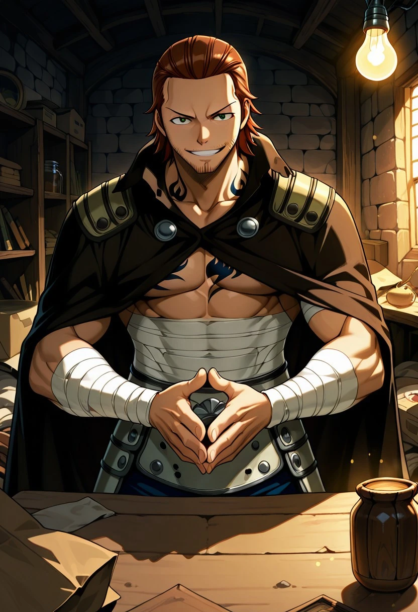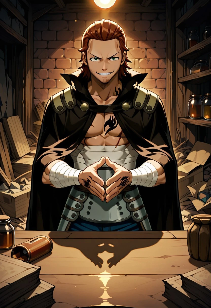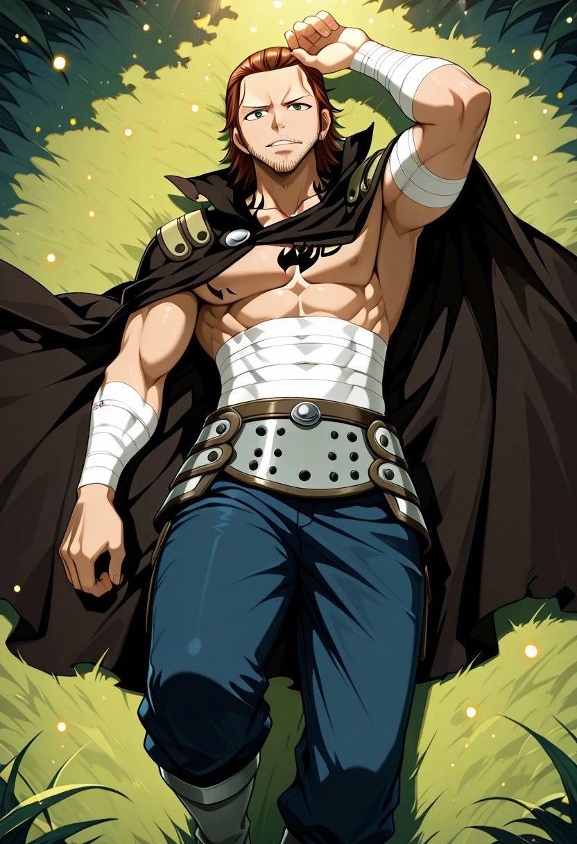 He took on the most difficult task offered by the Magic Council, the "Centennial Task," but returned three years later due to the intervention of the Black Dragon (Acnologia). He lost his left arm, leg, and several organs in battle.