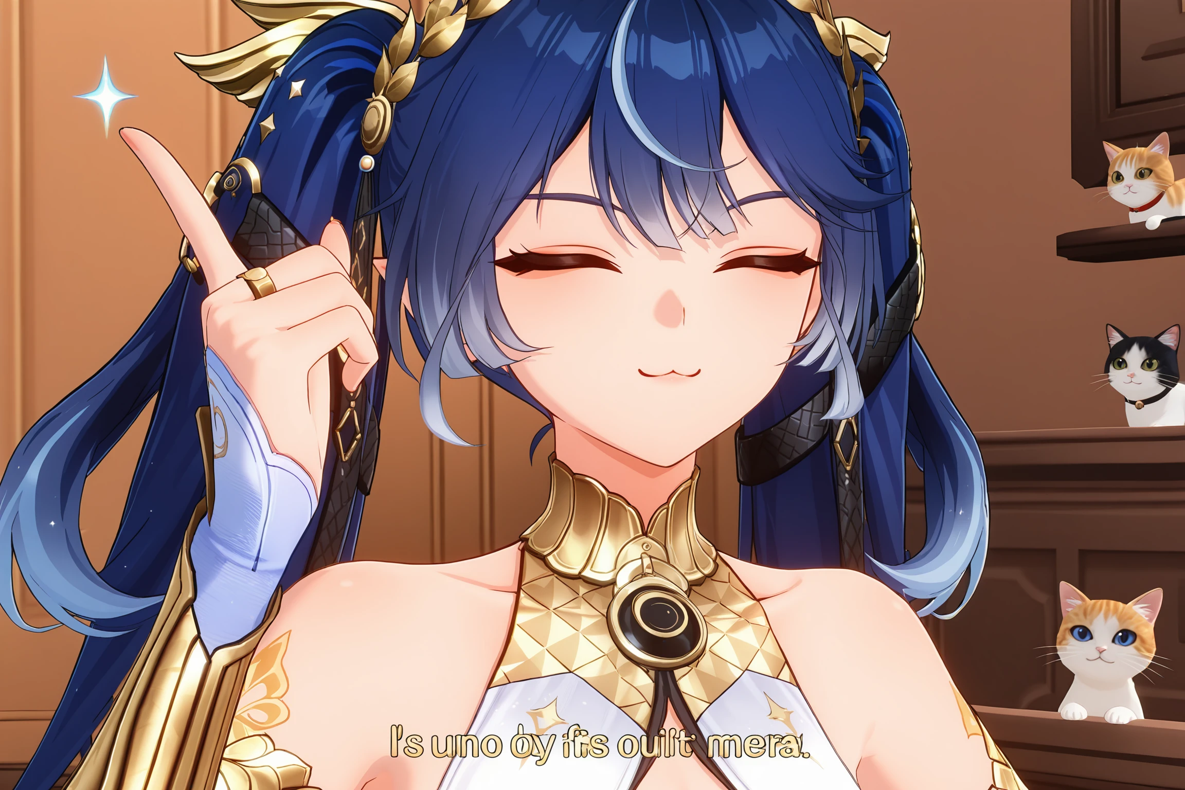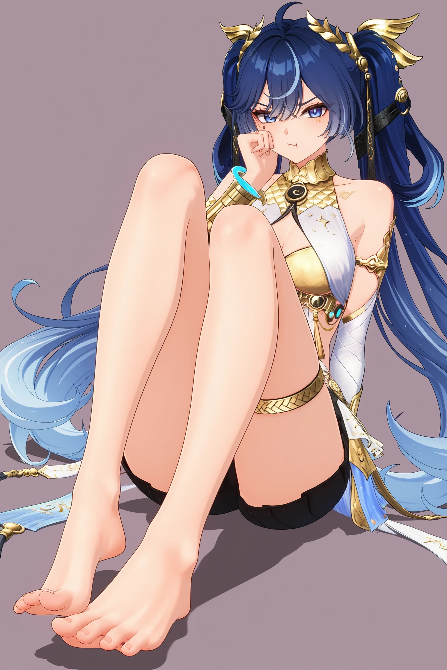 1girl, iuno_wuwa, wuthering_waves, astra_outfit, full_body, smile, blue_hair, long_hair, twintails,