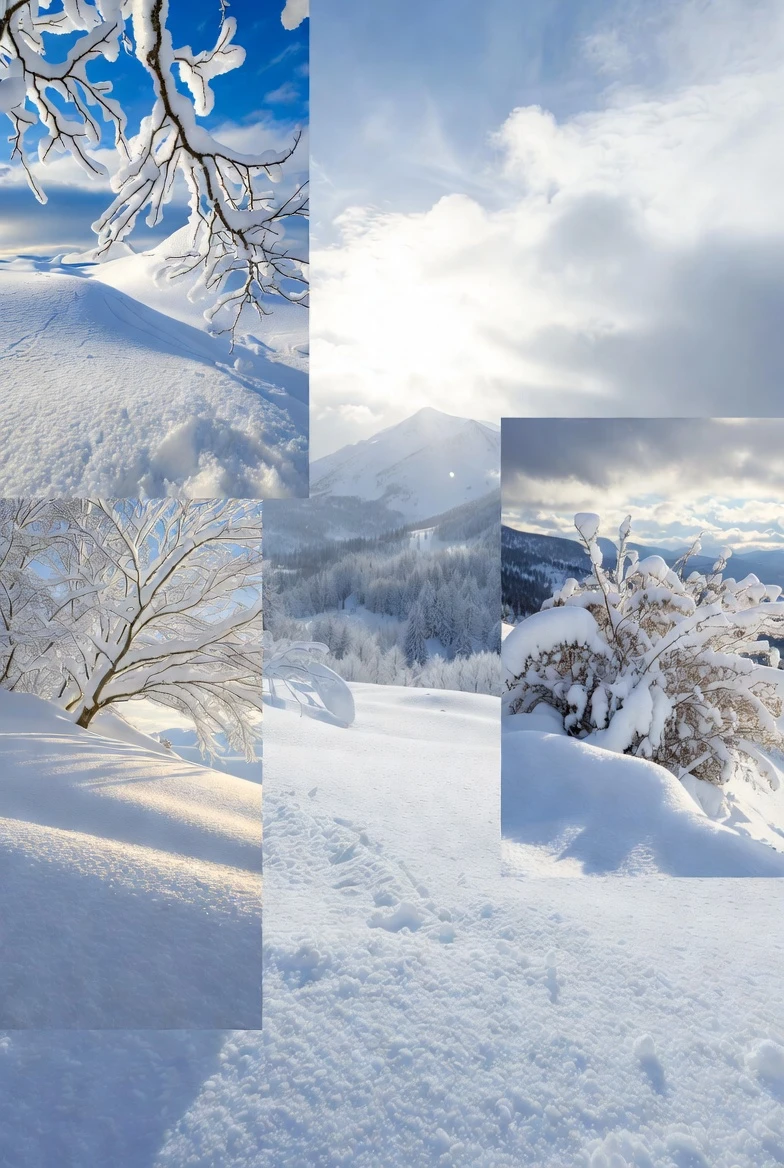 Detailed snowy mountain landscapes