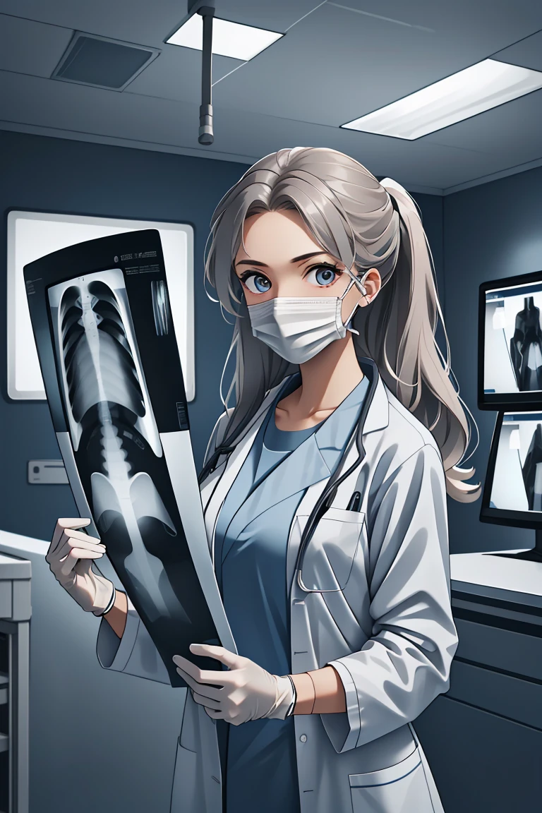 doctor xray, 1girl, solo, surgical mask, doctor, looking at viewer, labcoat,xray,