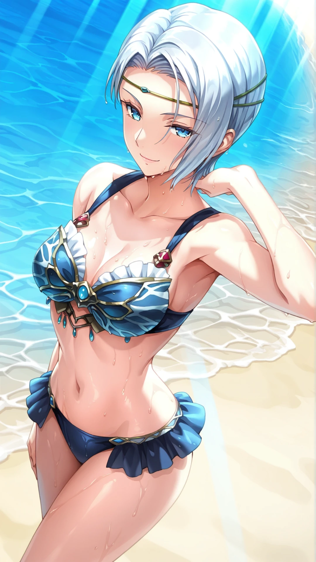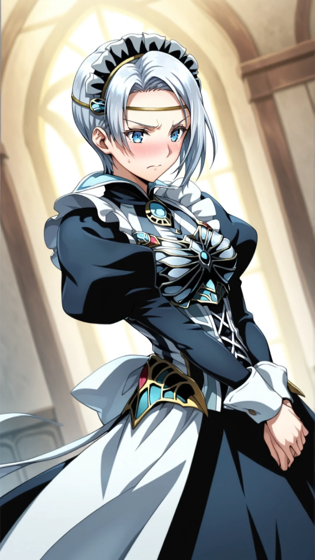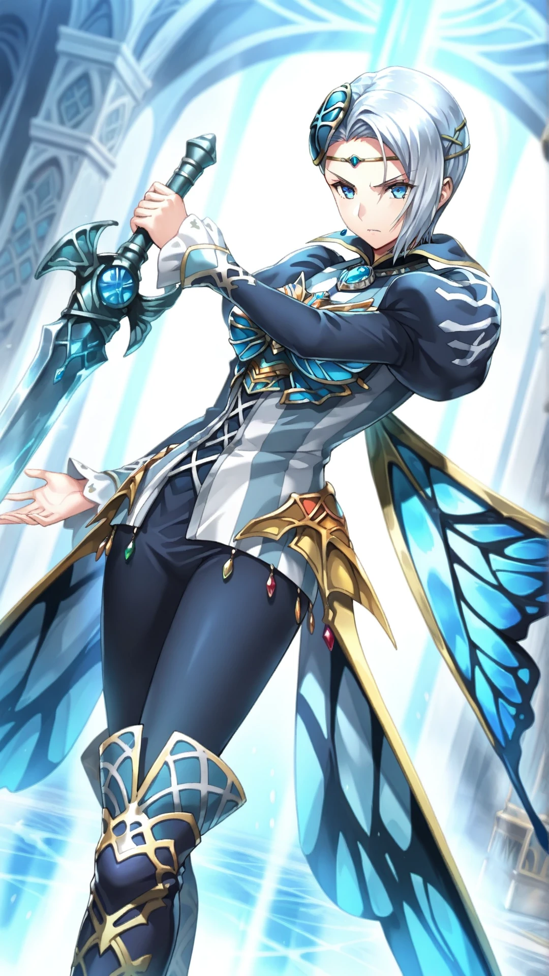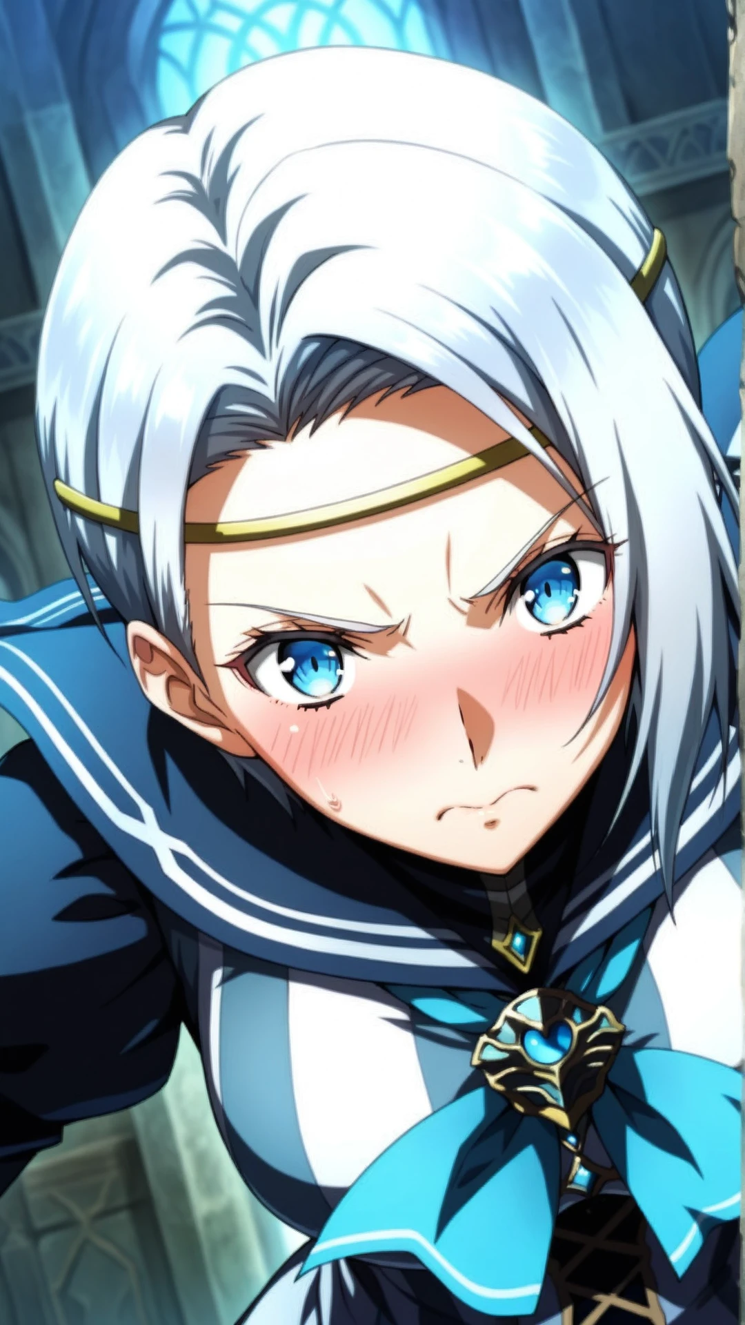 frielei\(minstrel saga\),white hair, short hair, blue eyes,
