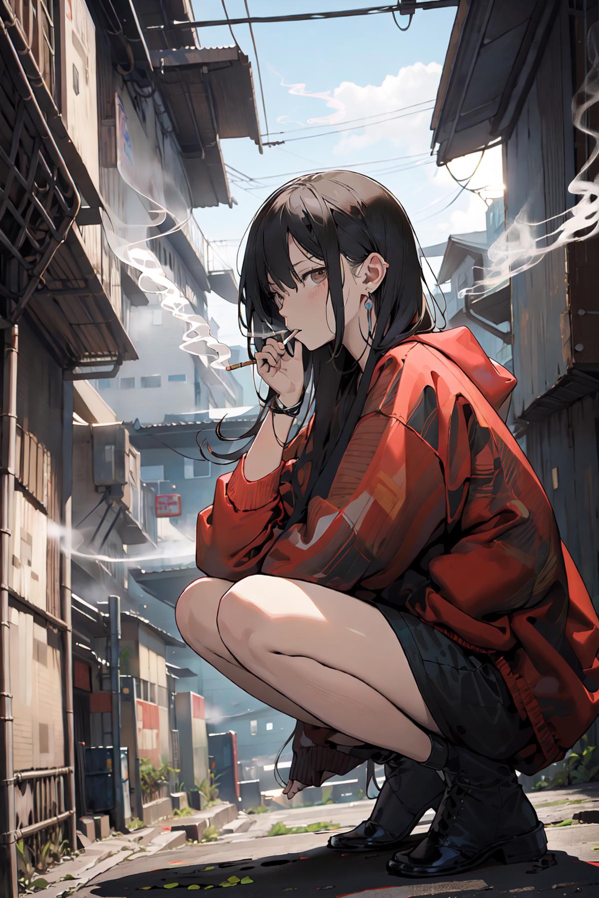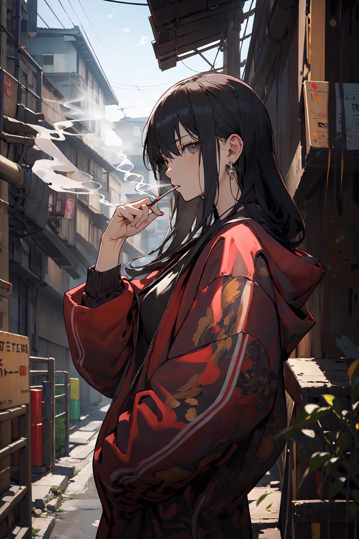 <lora:smoking girl_20230912150007:0.8>