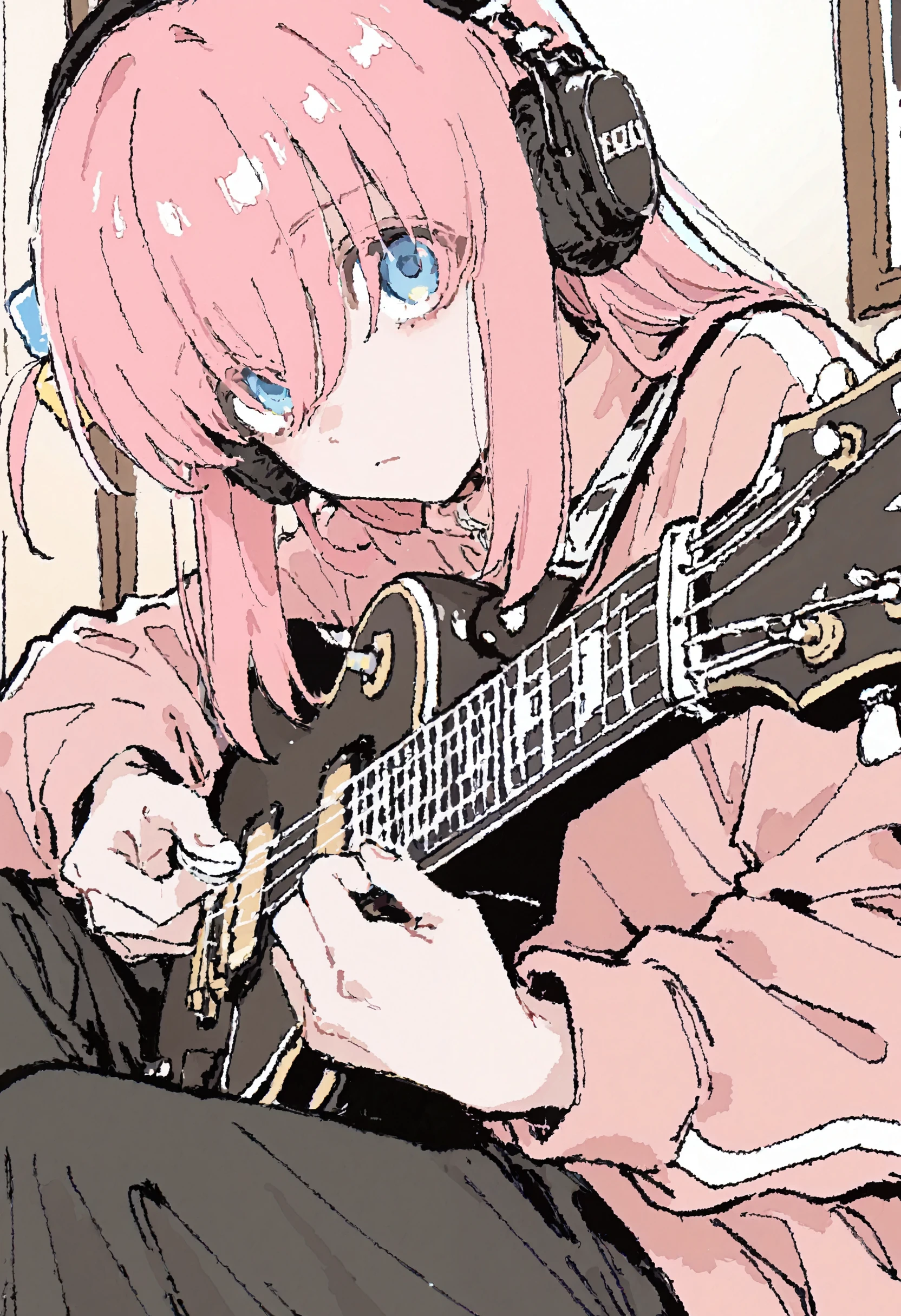 546L, traditional media, hatching \(texture\), film grain, 1girl, solo,Negative:
