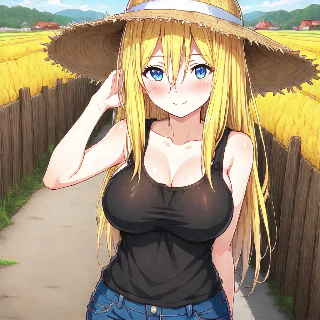 Akari: Akari, blonde hair, hair between eyes, long hair, blue eyes, large breasts