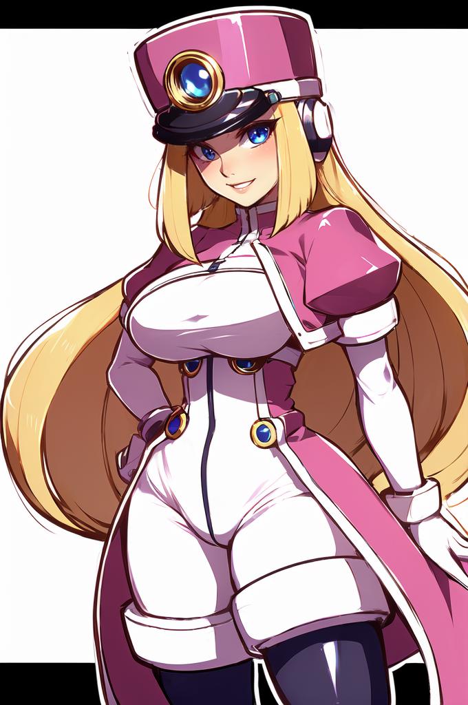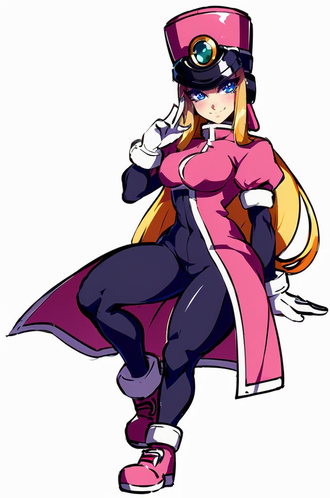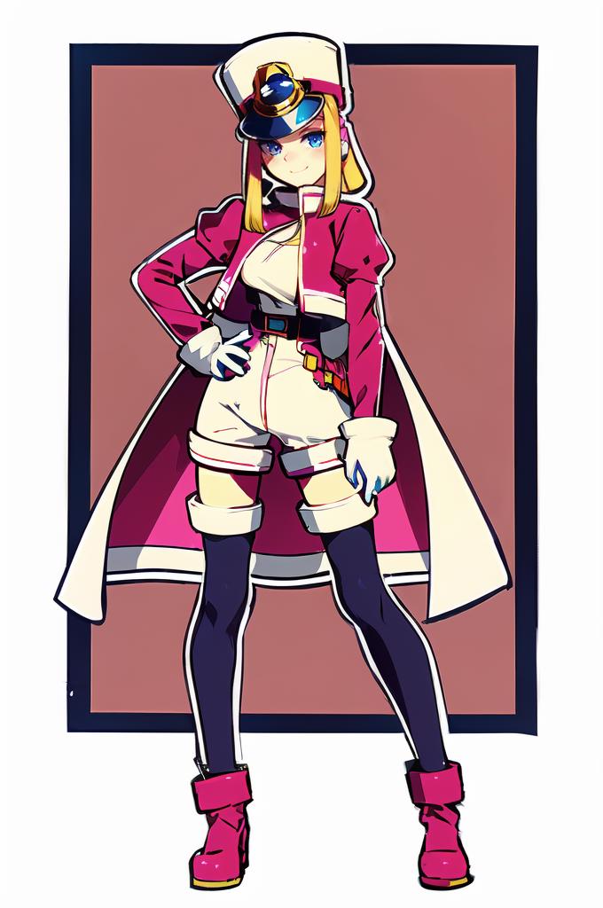 She is a character from MegaMan ZX, she is also the current commander of the Guardians, holding the position since the original leader disappeared. The Guardians take in people voluntarily to defend the Mavericks' "Frontier" areas and discover the causes of these outbreaks.