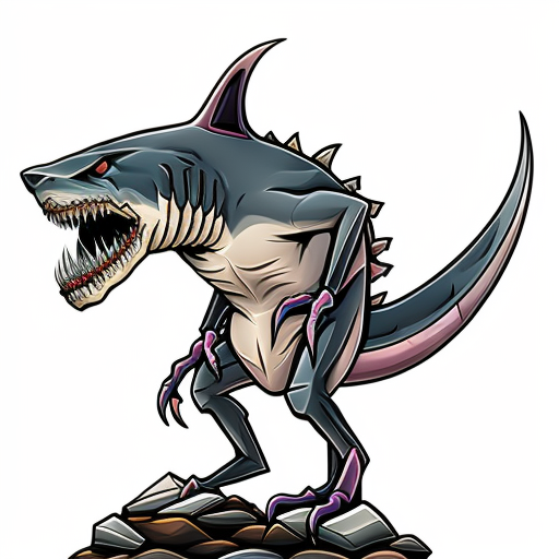 papermini, printableheroes, a [shark-like] rat monster with gray fur, long sharp terrifying teeth, large dirty mole digging claws, mole nose, pink rat tail, red eyes, long beaver front teeth, dorsal fin curving down its back, webbed paws, long rat-like tail, dirty messy rodent hair, rodent-like features, [shark-like features with sharp shark dorsal fin], amphibious creature, standing on rocky dirt ground, by Brom, white background <lora:papermini_v1-3:0.8>