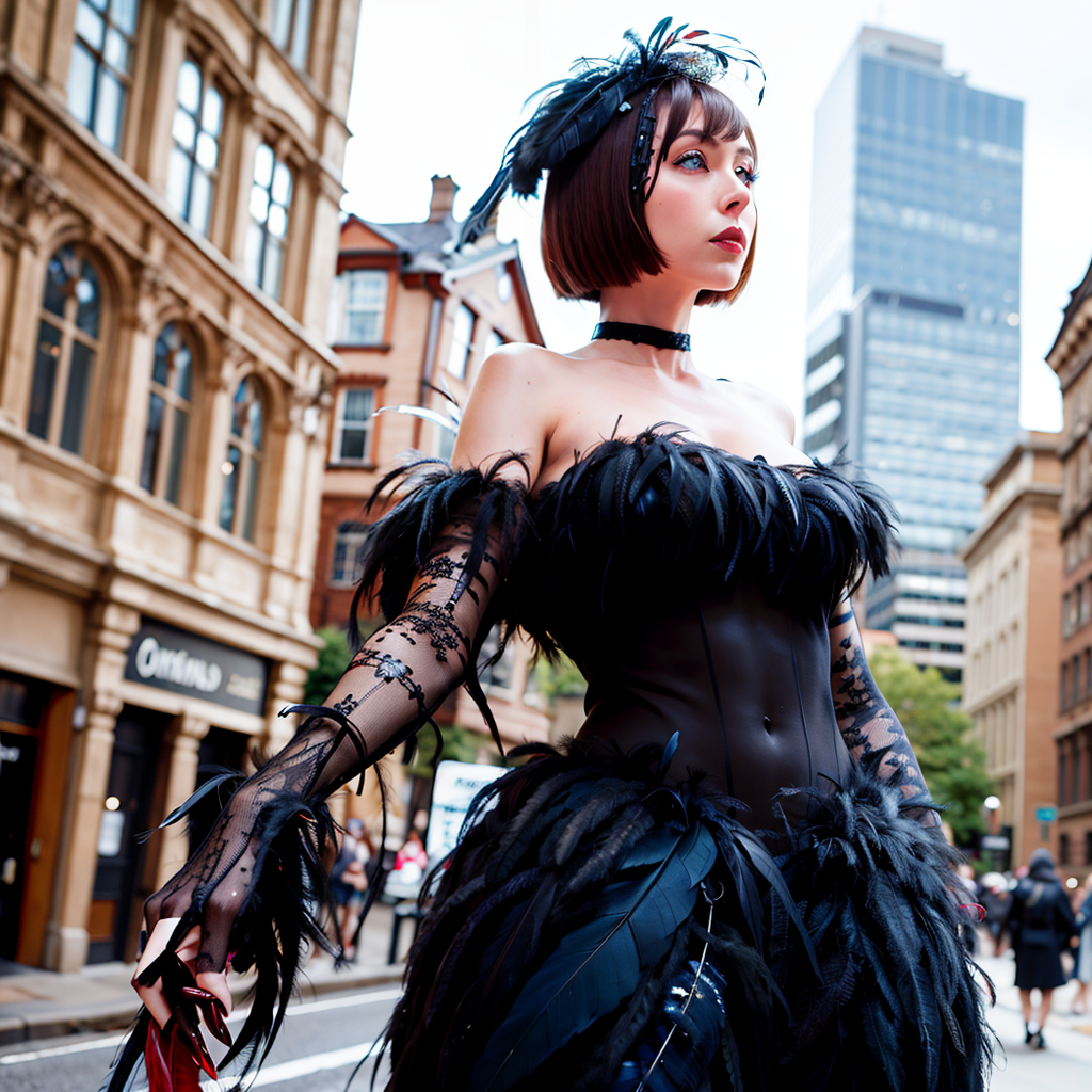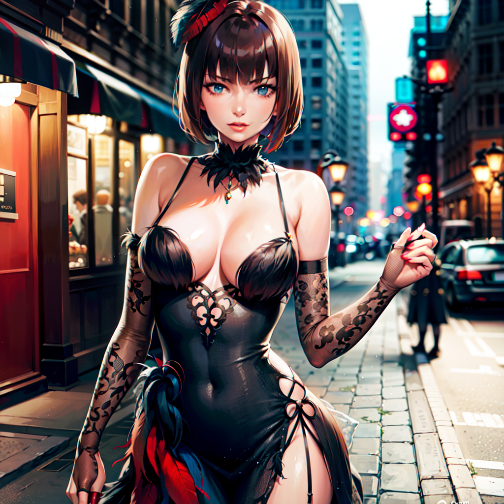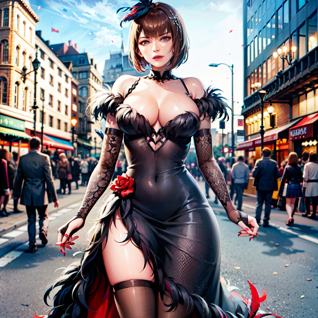 • Classic costume: annadress, high heels, elbow gloves, pantyhose, patterned legwear