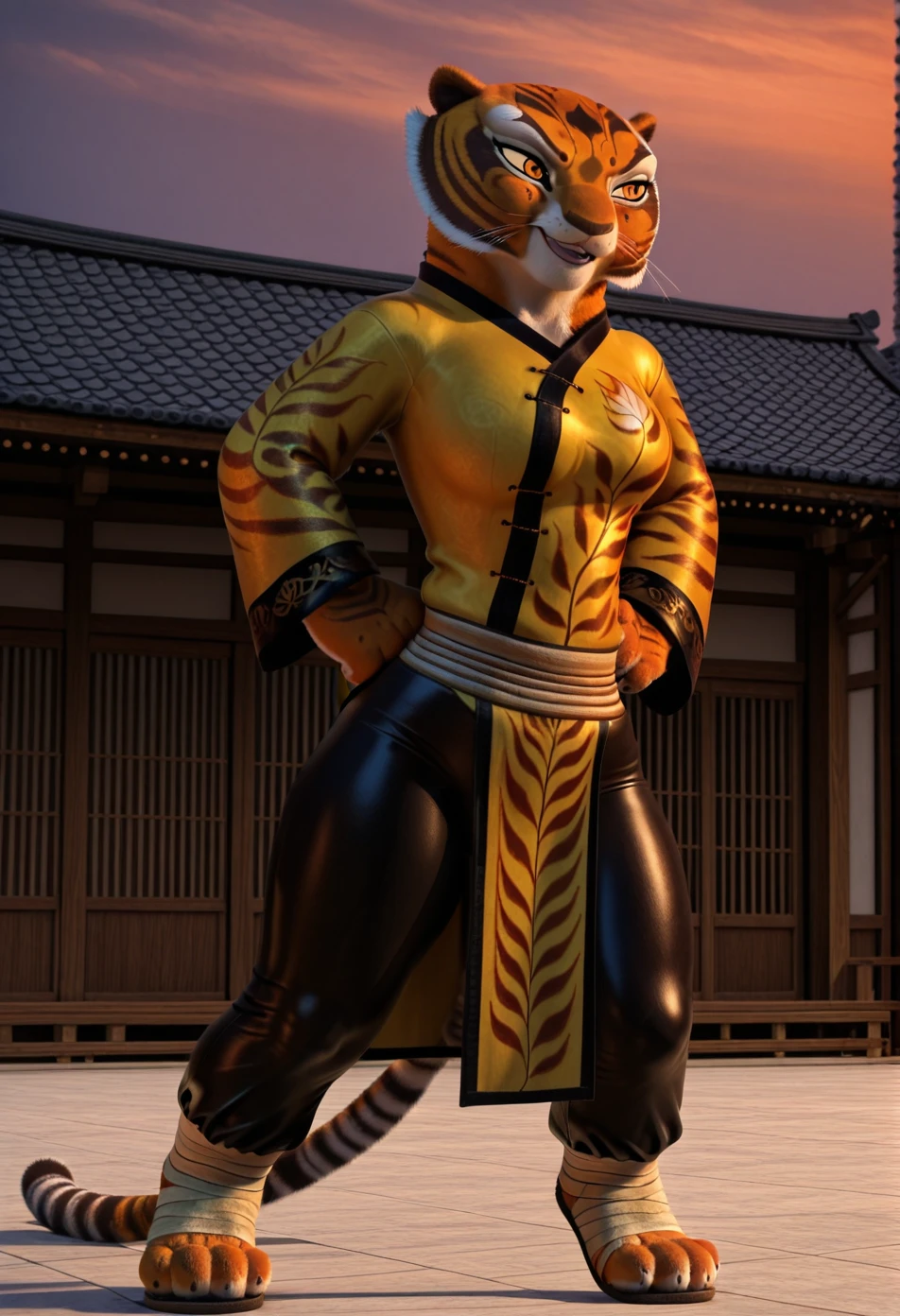 Main prompts: master tigress, tiger stripes, amber eyes, tigress, tiger tail, whiskers, animal ears