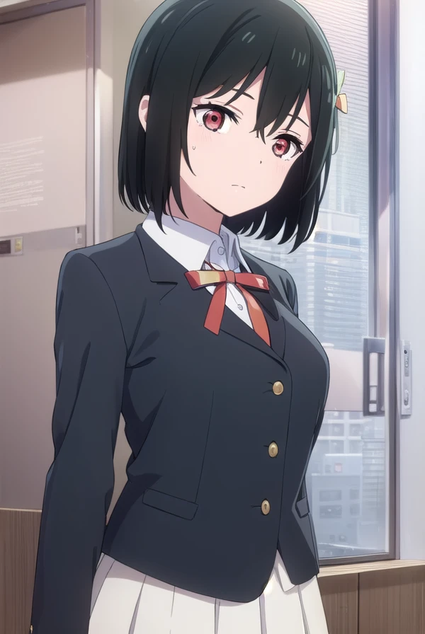 skirt, long sleeves, school uniform, jacket, red ribbon, black jacket, blazer, nijigasaki academy school uniform, white skirt,