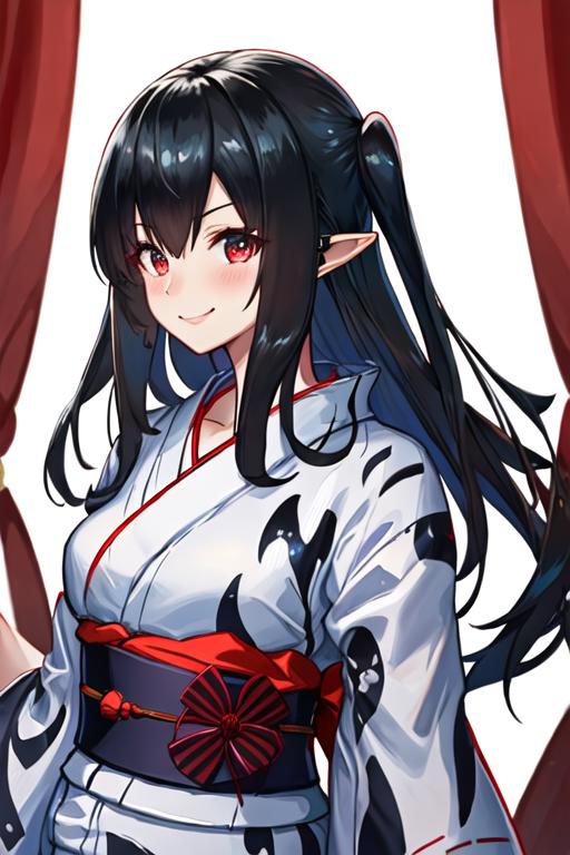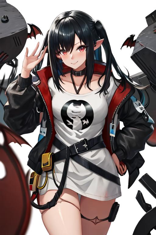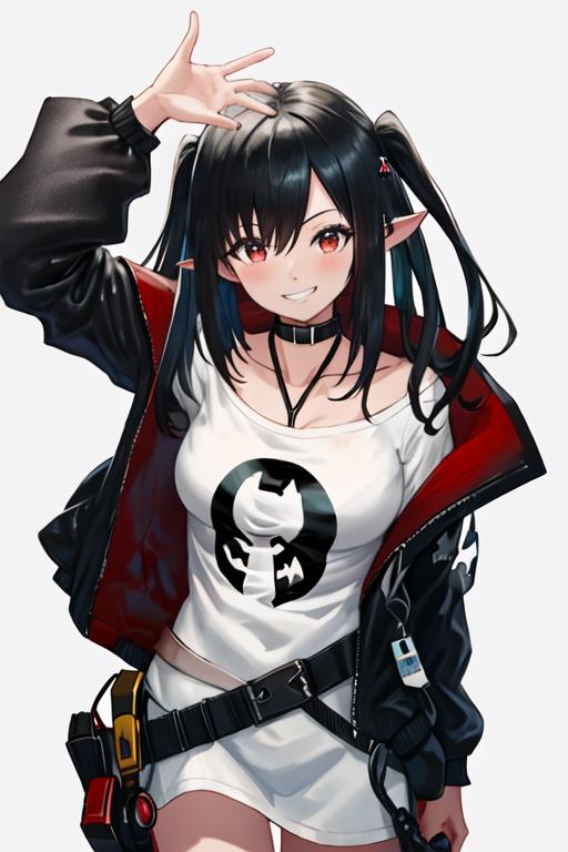 The trigger word is closure_arknights, and the recommended tags are best quality, masterpiece, highres, solo, {closure_arknights:1.15}, black_hair, pointy_ears, long_hair, red_eyes, bangs, hair_between_eyes, smile, upper_body, breasts, blush, two_side_up.