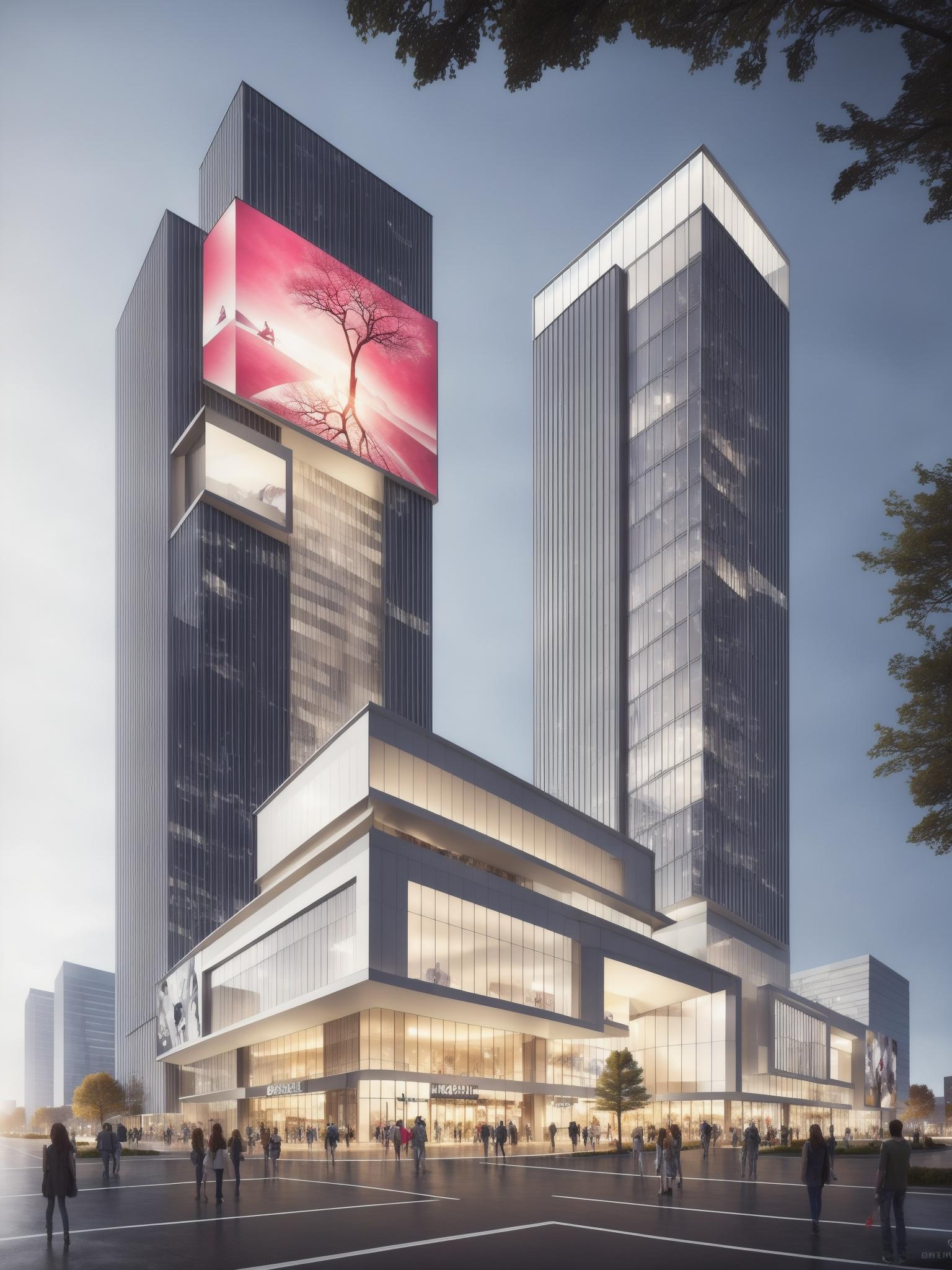这是现代风格的商业综合体lora模型,主要呈现购物中心和高层办公楼,希望大家喜欢。底模:realisticVisionV20