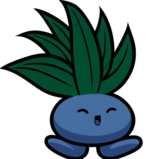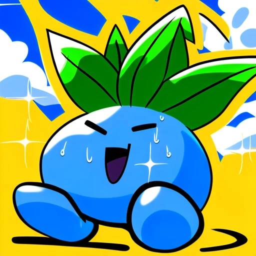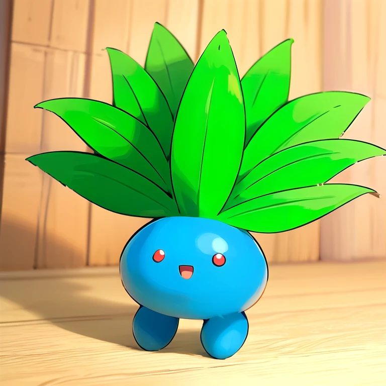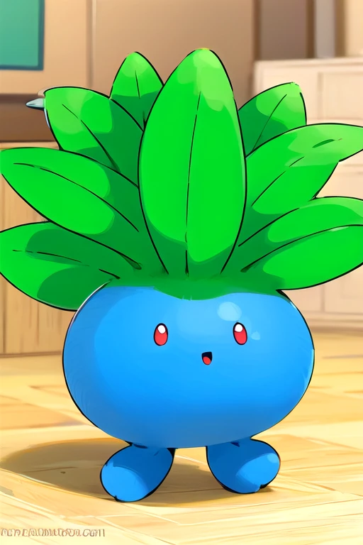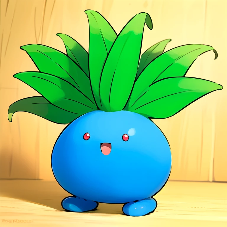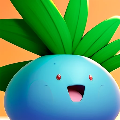 The recommended prompts are: anime, oddish, pokemon \(creature\), :D, no humans, full body, green leaves, red eyes, blue body,