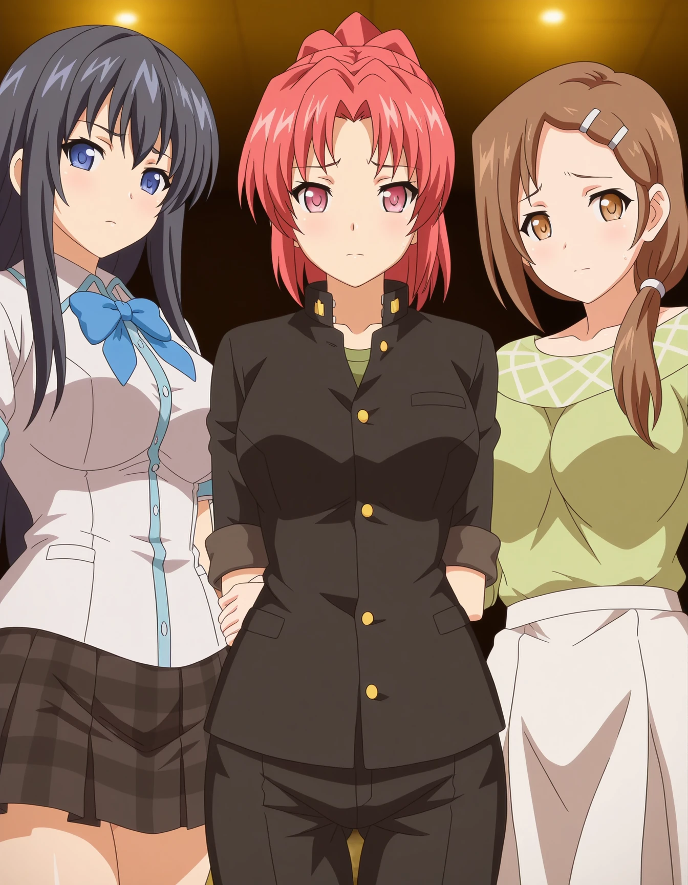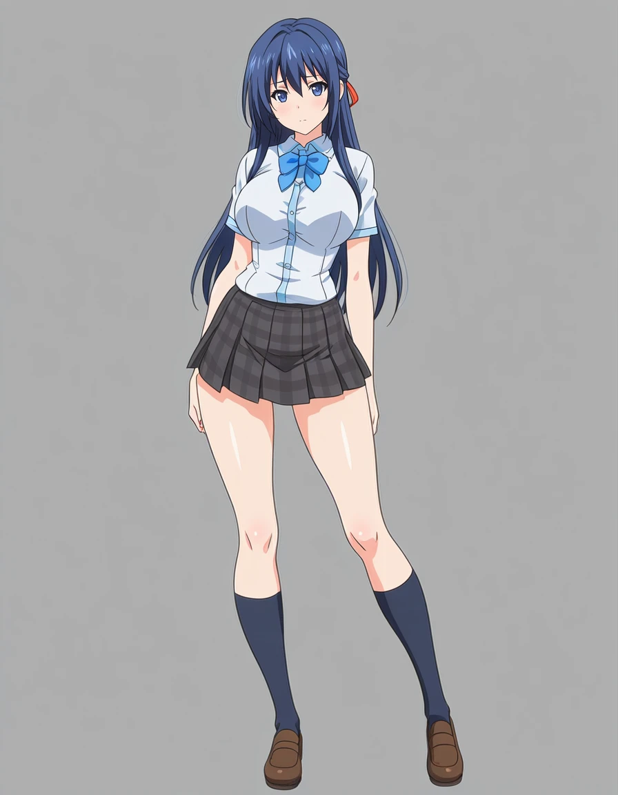 mai_wsss,mai_akiws,long_hair,black_hair,blue_eyes,large_breasts,bow,school_uniform,plaid_skirt