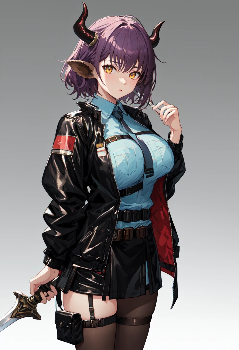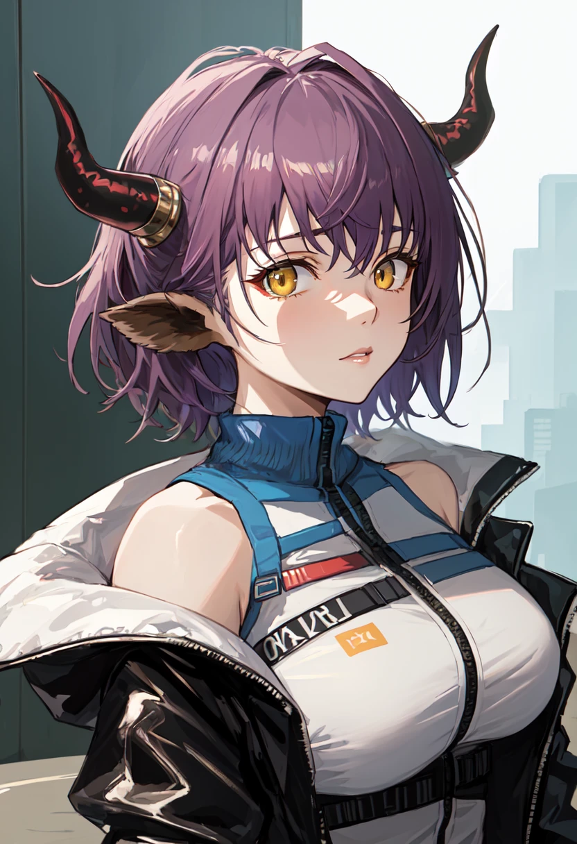 The trigger word is sideroca_arknights, and the pruned tags are animal_ears, horns, cow_horns, purple_hair, cow_ears, breasts, short_hair, cow_girl, large_breasts, yellow_eyes, visor_cap, tail, cow_tail, brown_eyes. When some features (e.g. hair color) are not so stable at some times, you can add these them into your prompt.