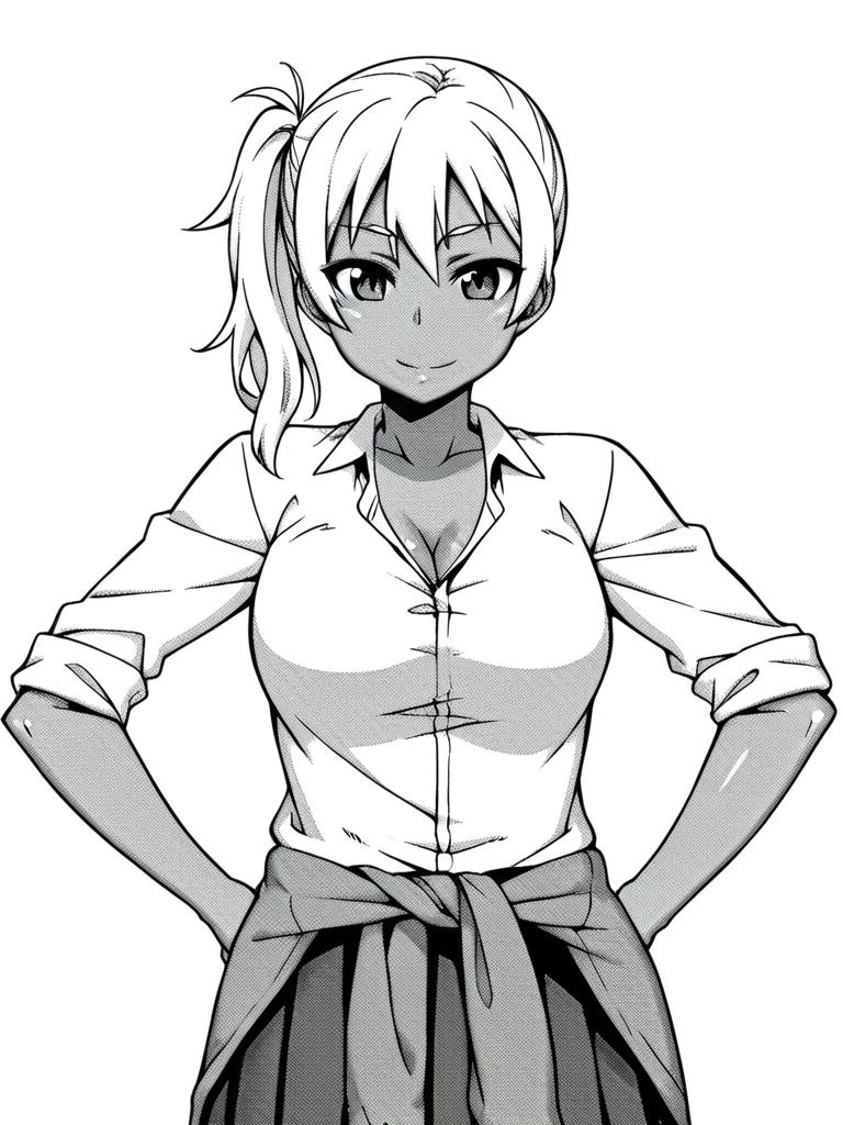 hasegawa ayano, ponytail, black hair, one-piece tan,