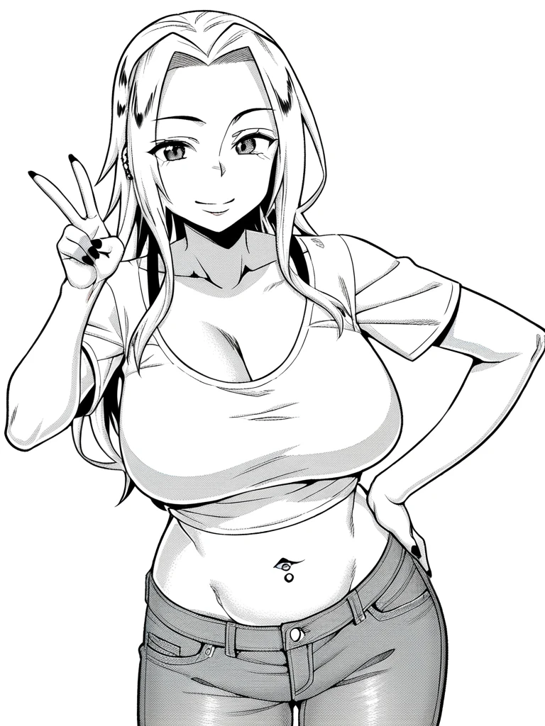 misa tk, black streaks, long hair, parted bangs, mature female, blonde hair,