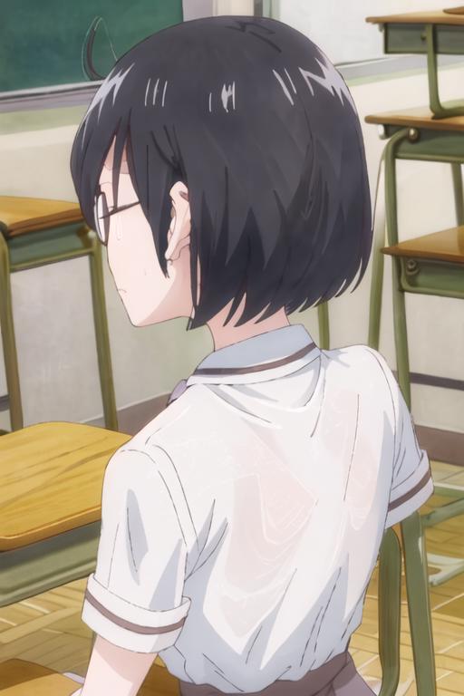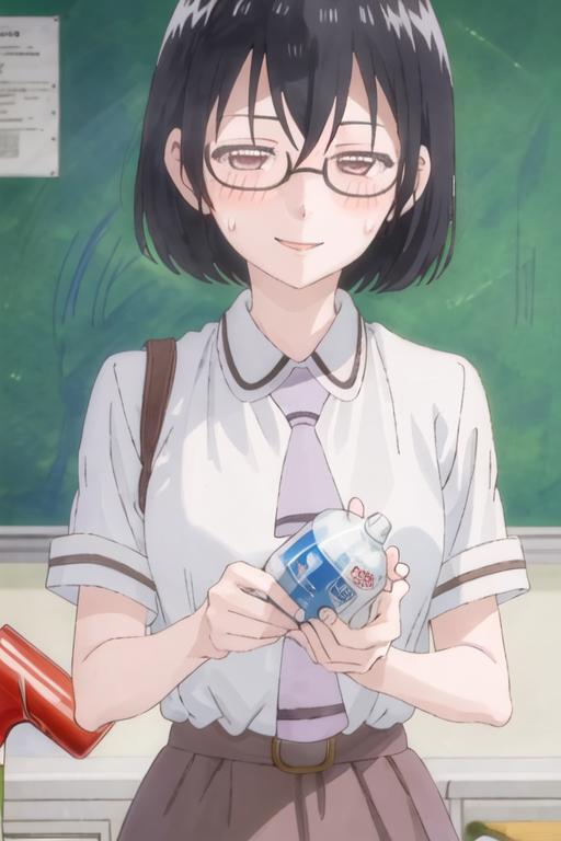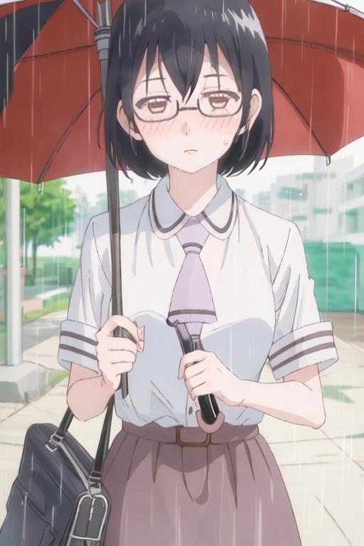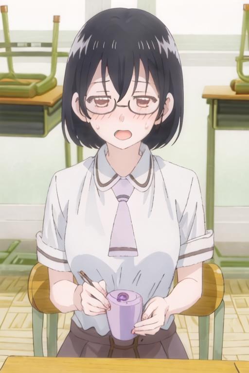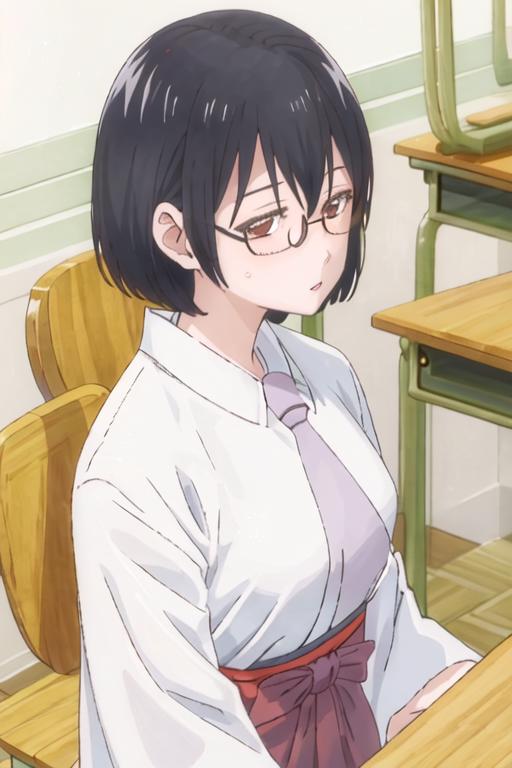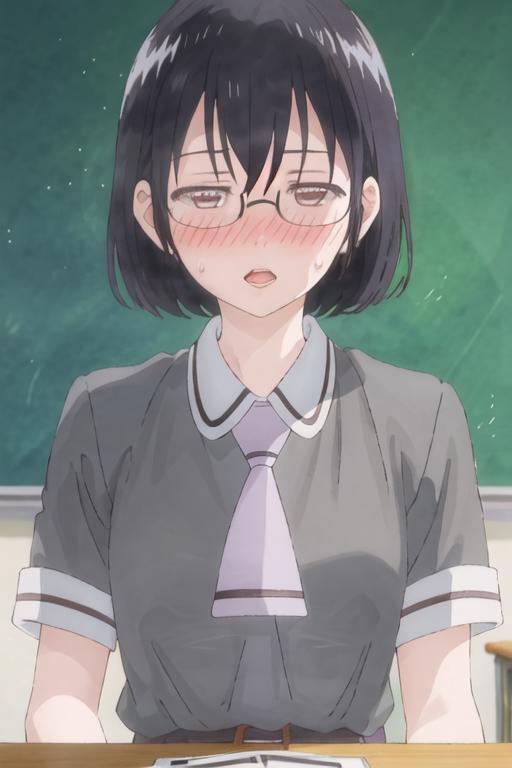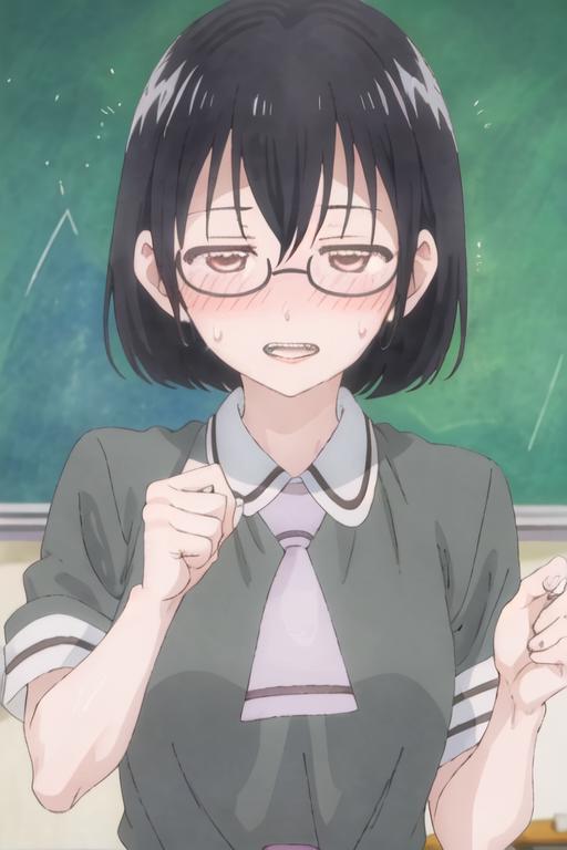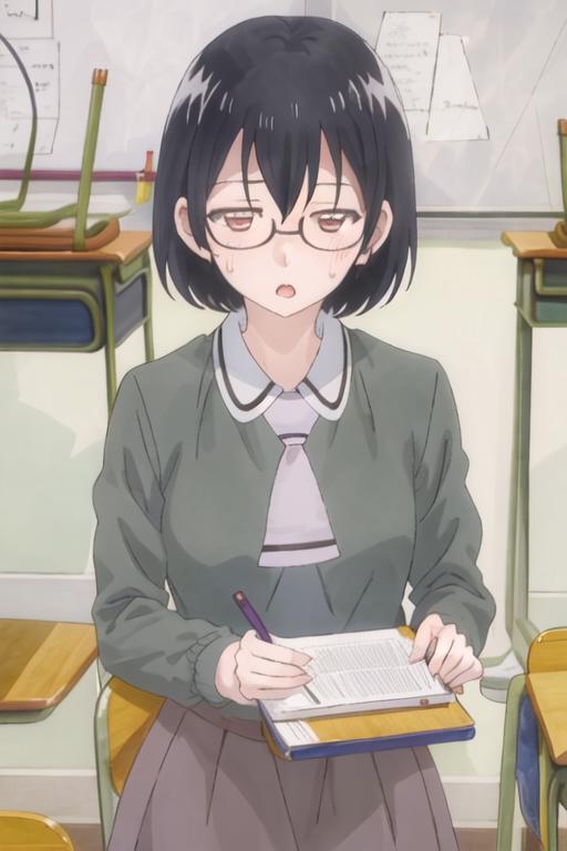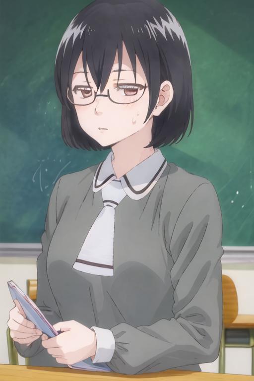 The trigger word is kasumi_nomura_asobiasobase, and the recommended tags are best quality, masterpiece, highres, solo, {kasumi_nomura_asobiasobase:1.15}, black_hair, glasses, short_hair, necktie, brown_eyes.