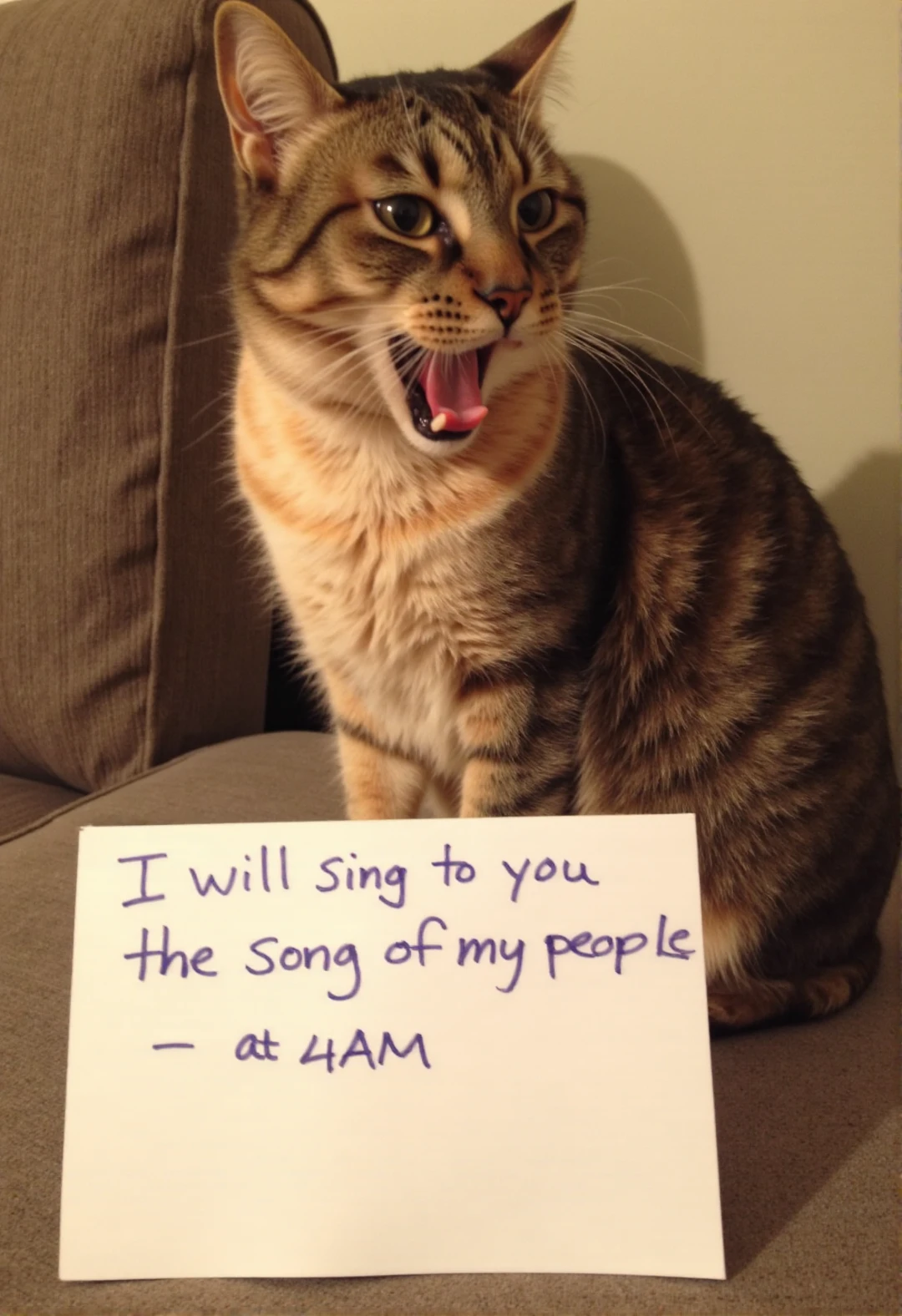 sh4m3, a high resolution photo of a cat with a sign in front of it that says: