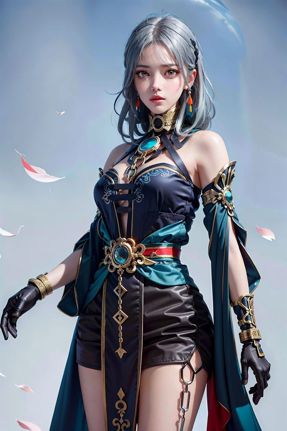 Hanya \(honkai: star rail\),hair between eyes, hair ornament, chinese clothes, jewelry, elbow gloves, chain, high heels, toeless footwear