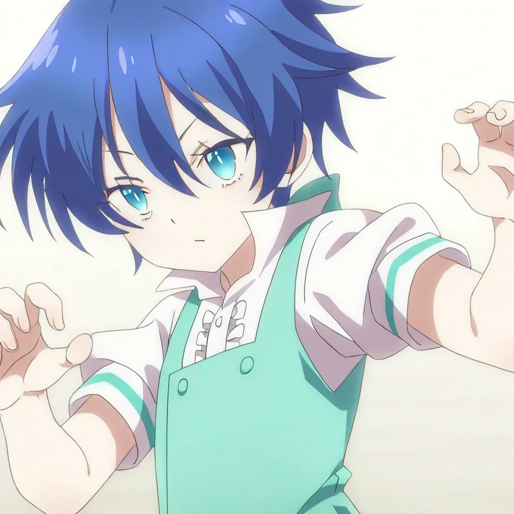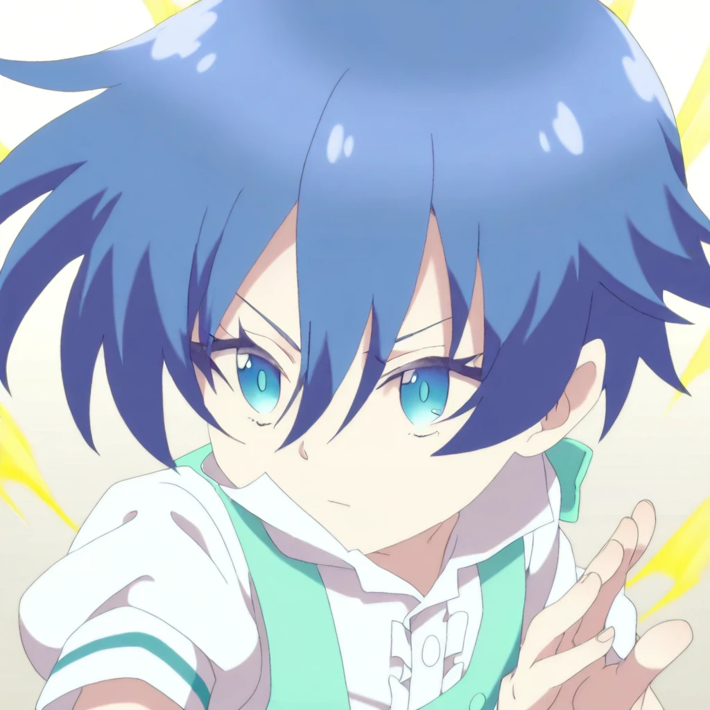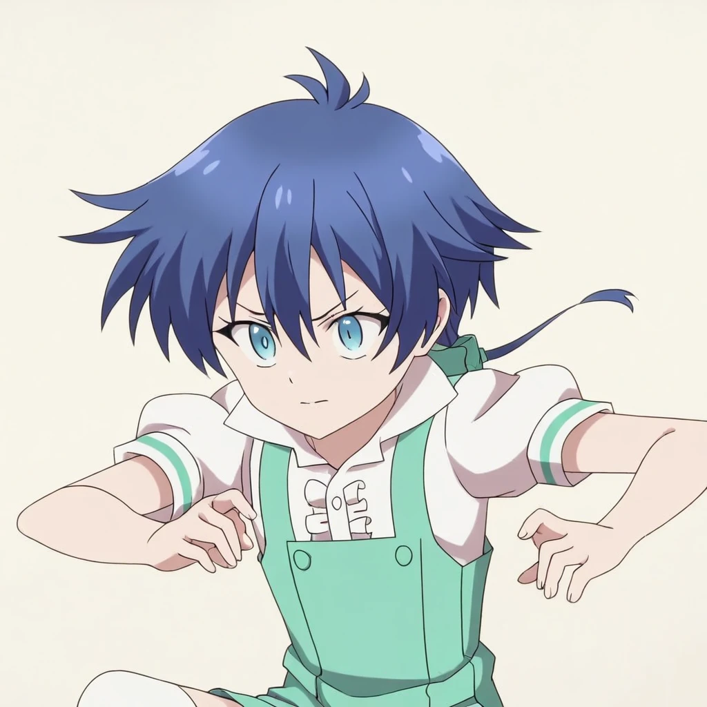 1boy, Lloyd de Saloum, short messy blue hair, blue eyes