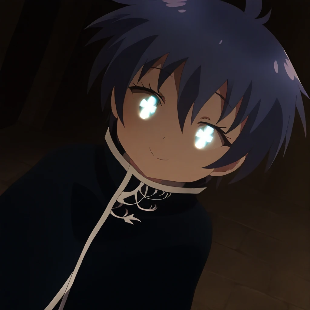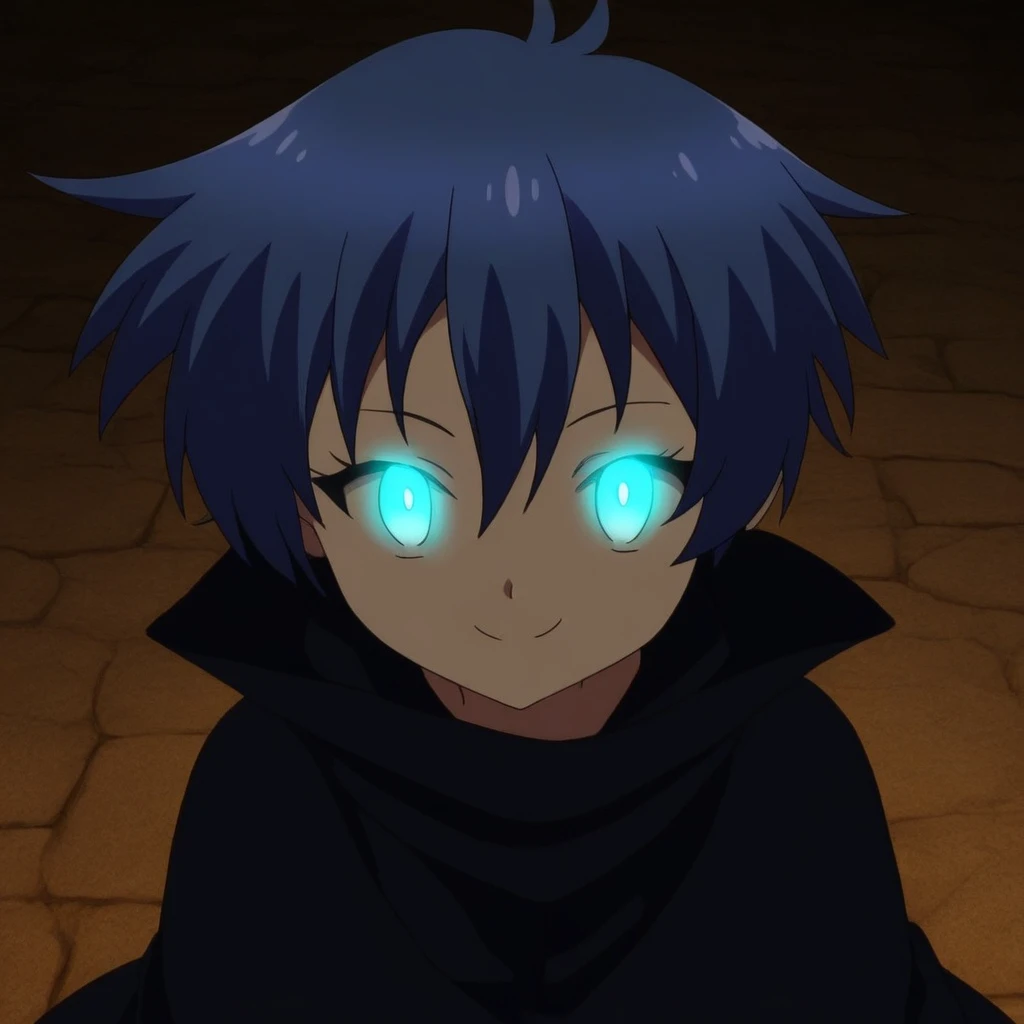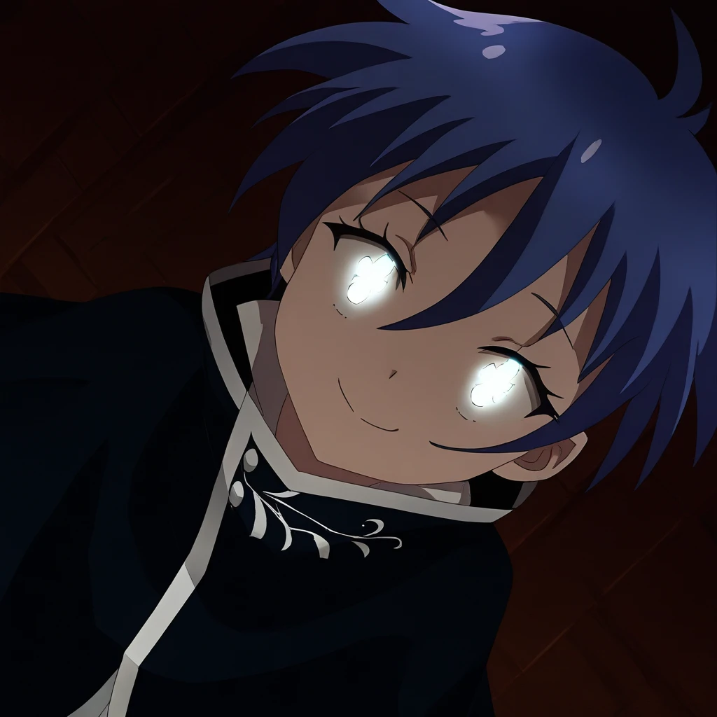 1boy, Lloyd de Saloum, short messy blue hair, blue eyes