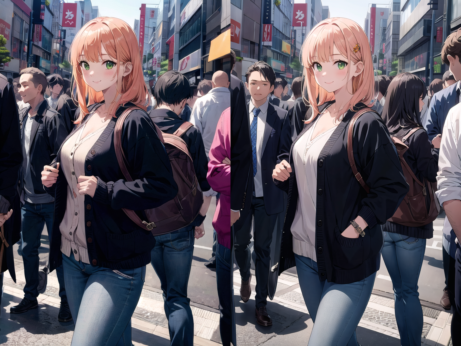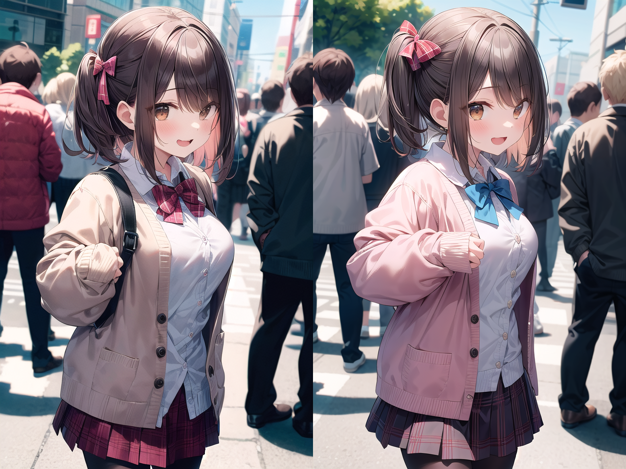 flat/flat2、Detail Enhancer、Add_Detailなど、ディティールアップ用のLoRAを強めに使用した出力