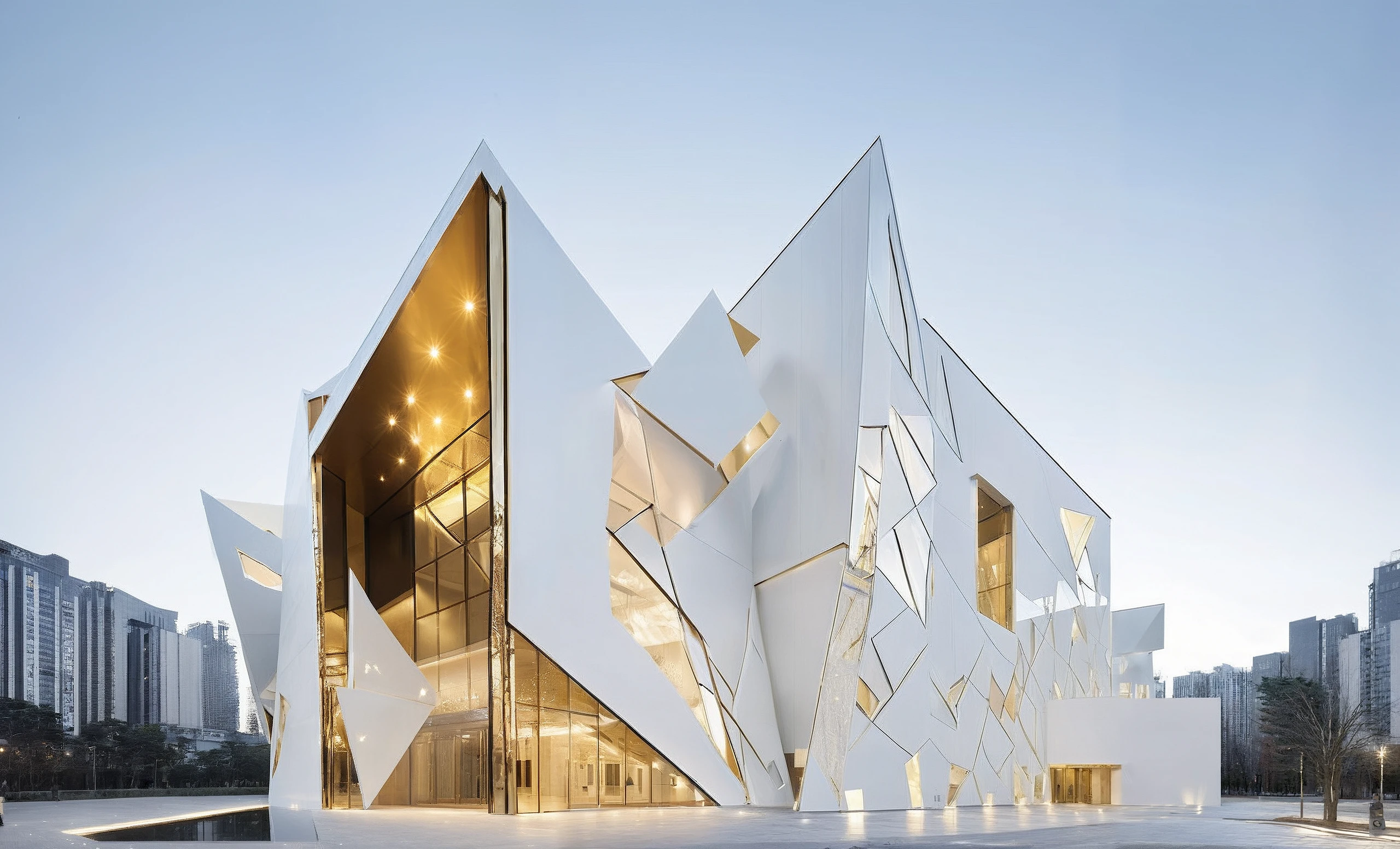 Non-linear Geometry: The model is capable of generating structures with highly irregular, jagged, or curved shapes, reflecting the chaotic yet artistic nature of deconstructivist architecture.