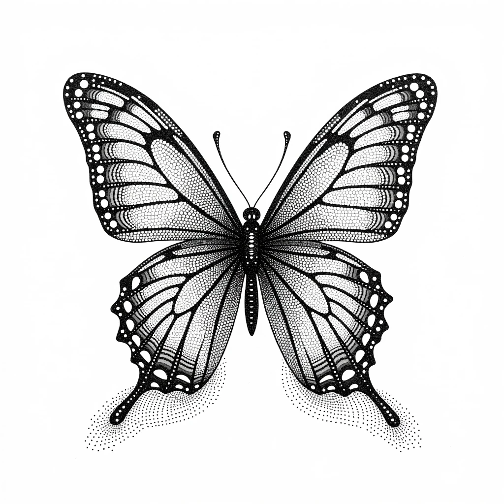 Dot Art black and white style, a butterfly