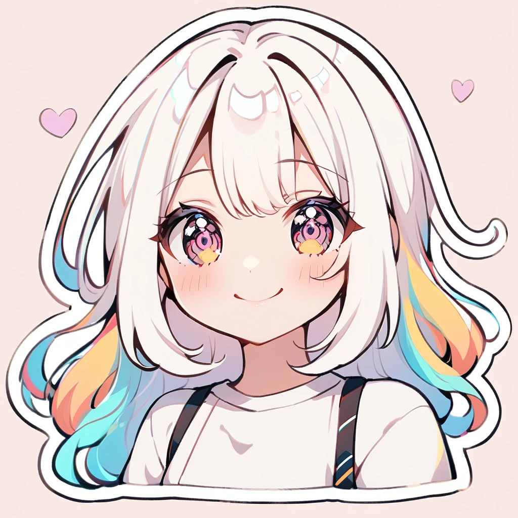 yumichanartstyle, simple background, simple, upper body, chibi, outline, white outline, outline,