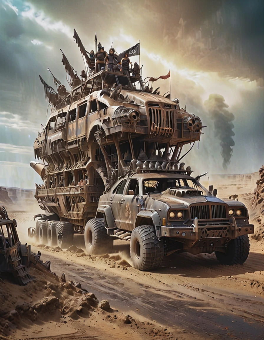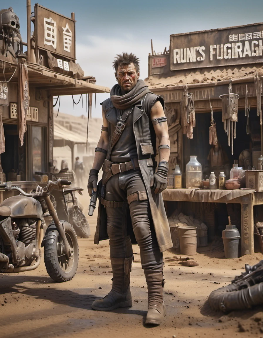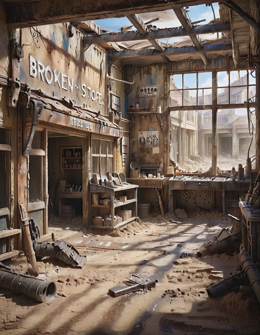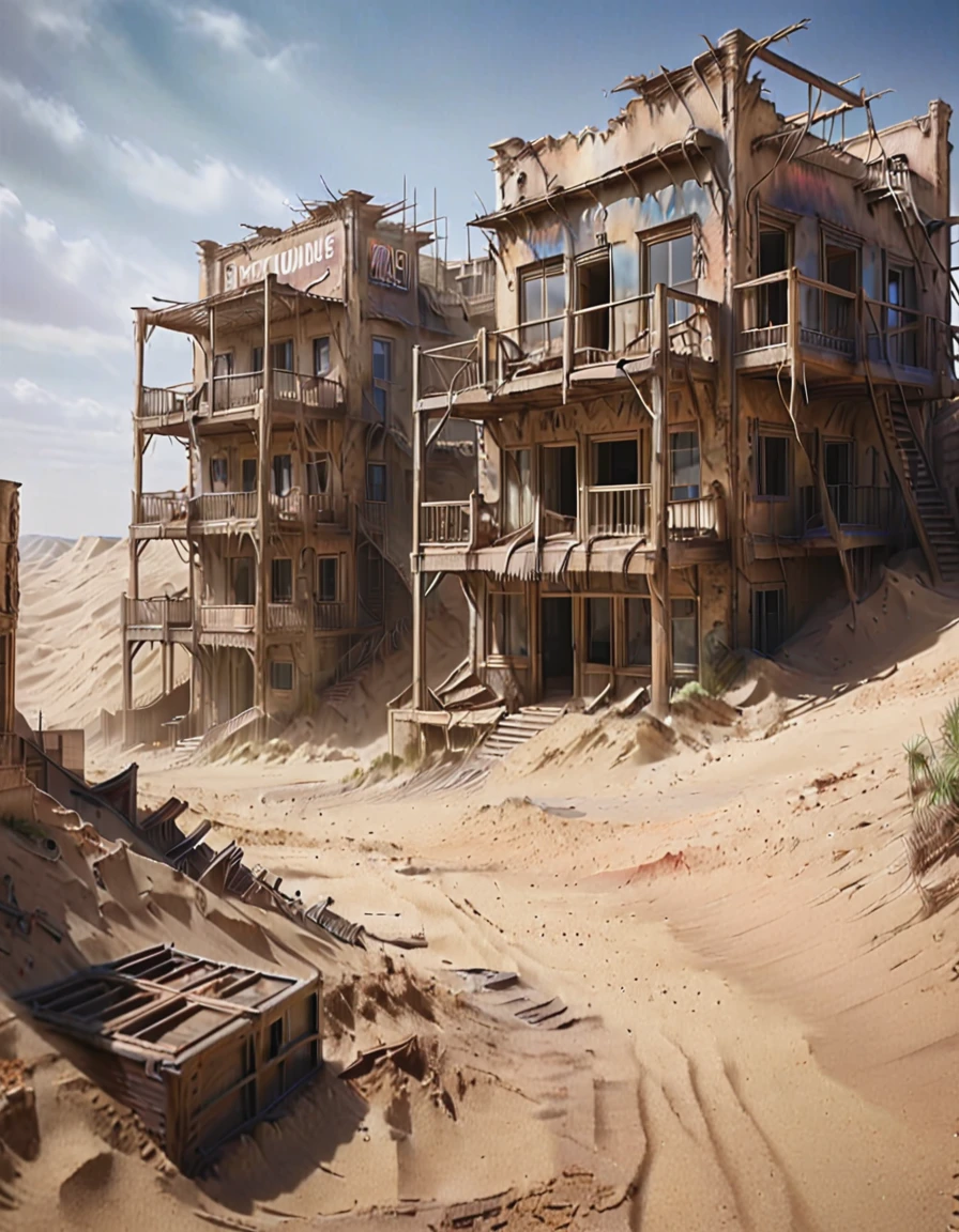 Mad max style cities, houses, shops and vehicules. Sand and mud.