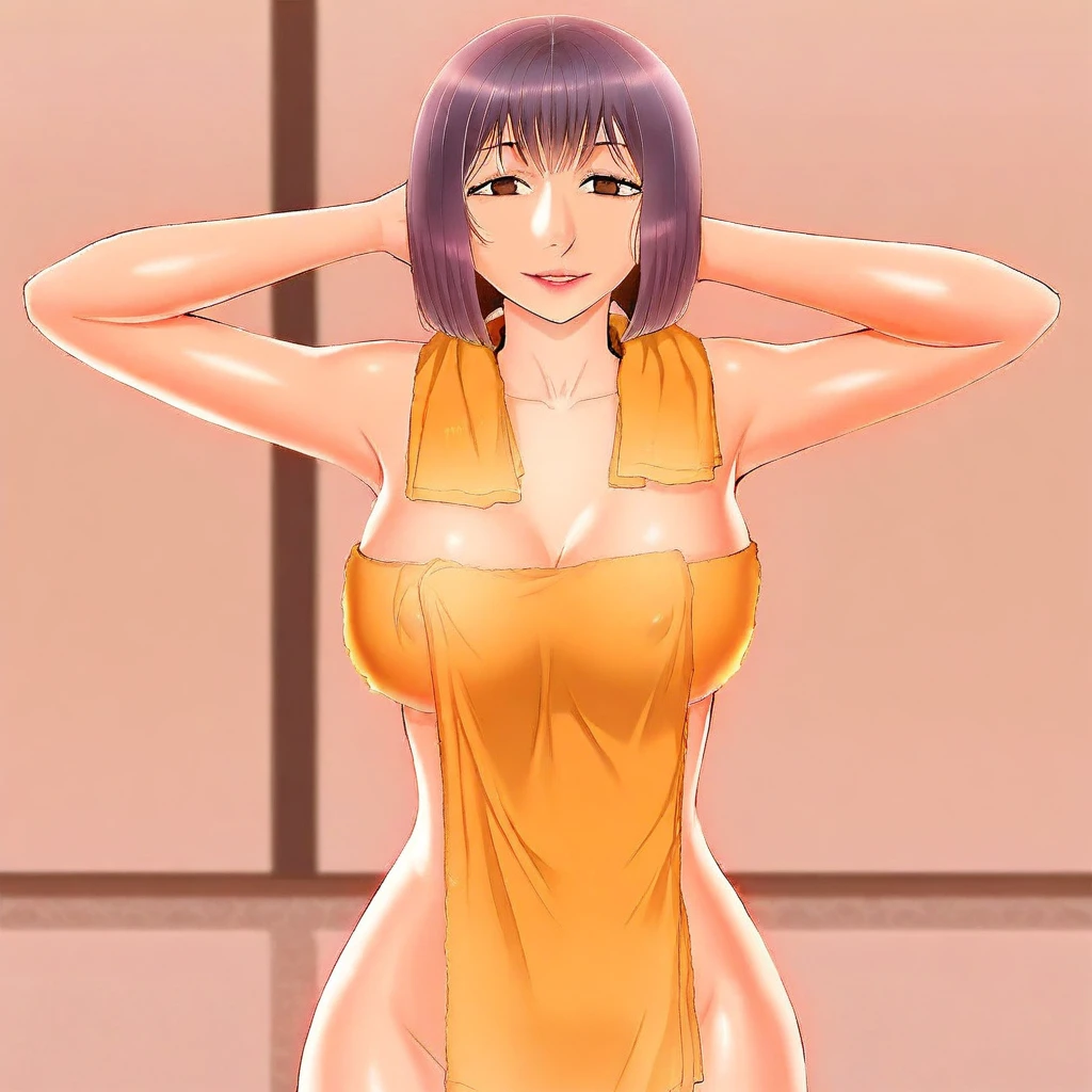 2. ((short yellow towel in the neck, obscene cleavage, huge cleavage, ?????, covered ???????, ))