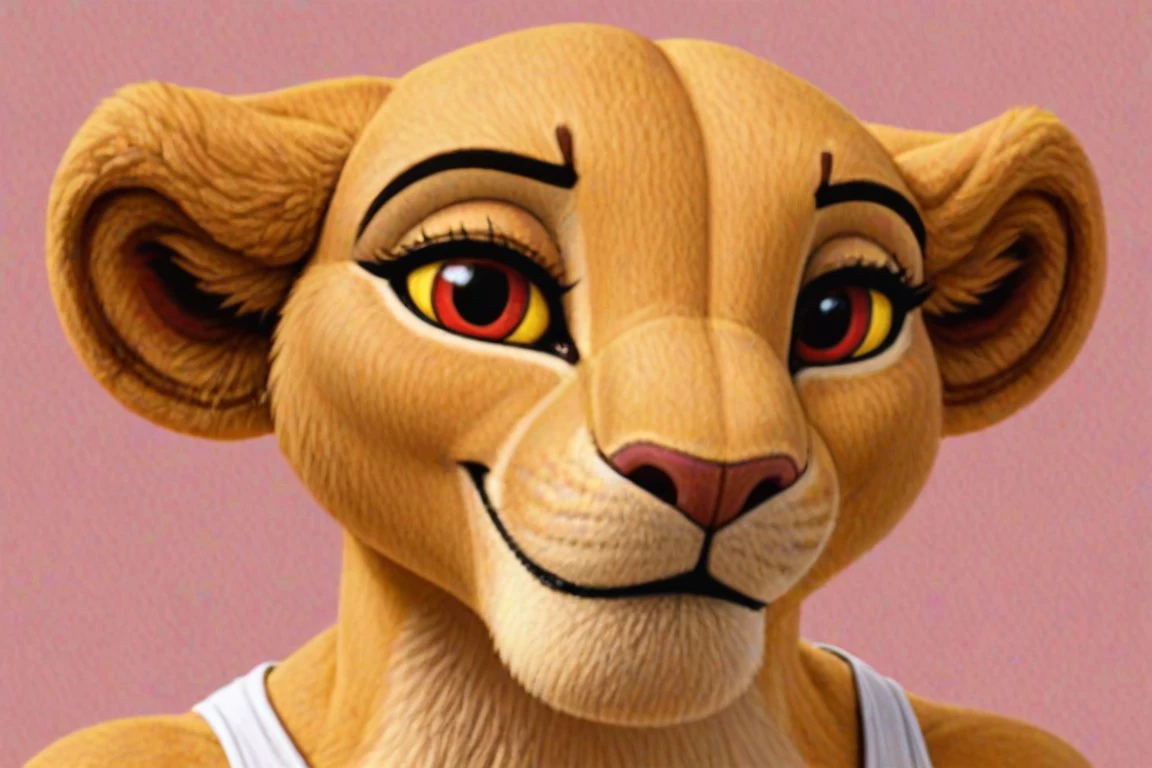 sarabi (lioness, tan fur/body, yellow sclera, red eyes)