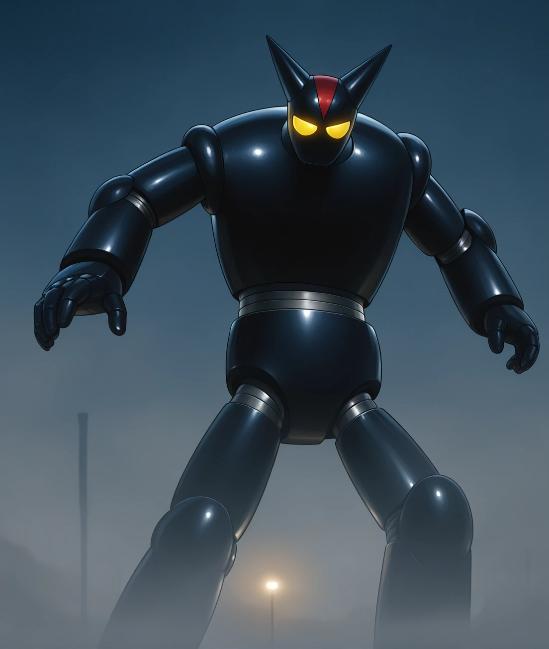 BlackOx, robot, tetsujin_28-gou_(classic),outdoor,night,slouching,fog,