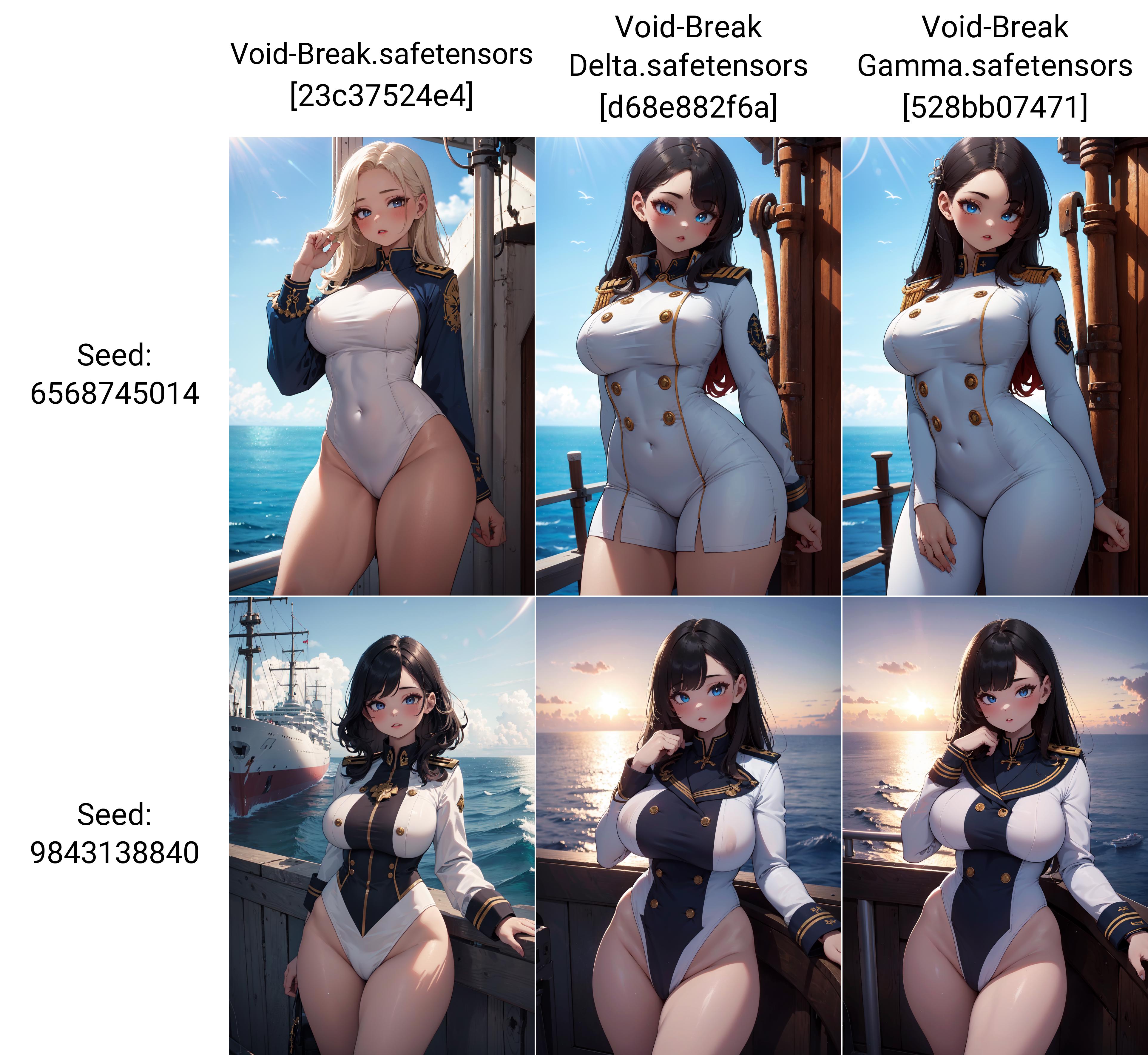 VoidBreak is kind of a magical mix started from BreakDomain_M2150, a model version that no longer exists, and a near perfect fusion of a few loras. This is an evolution of QBreak, which only had one lora added in, while this has 3-4 more.