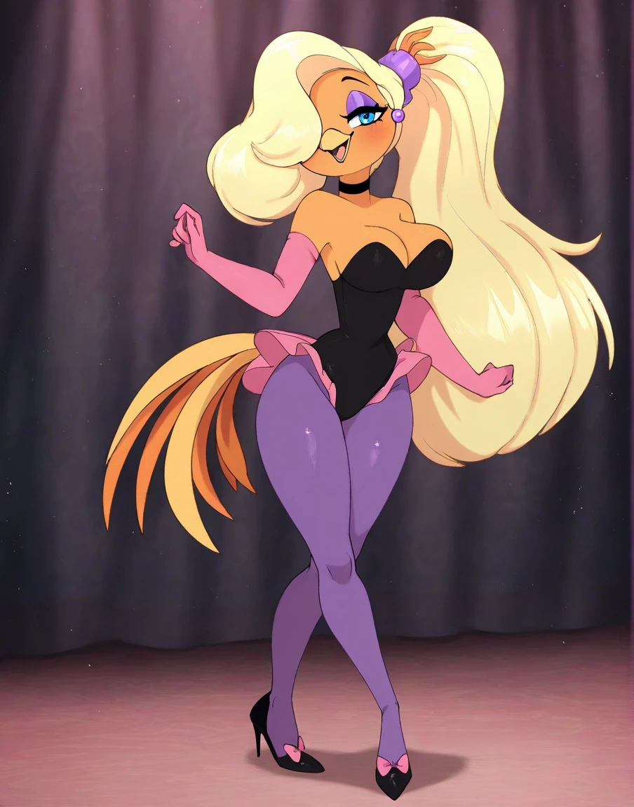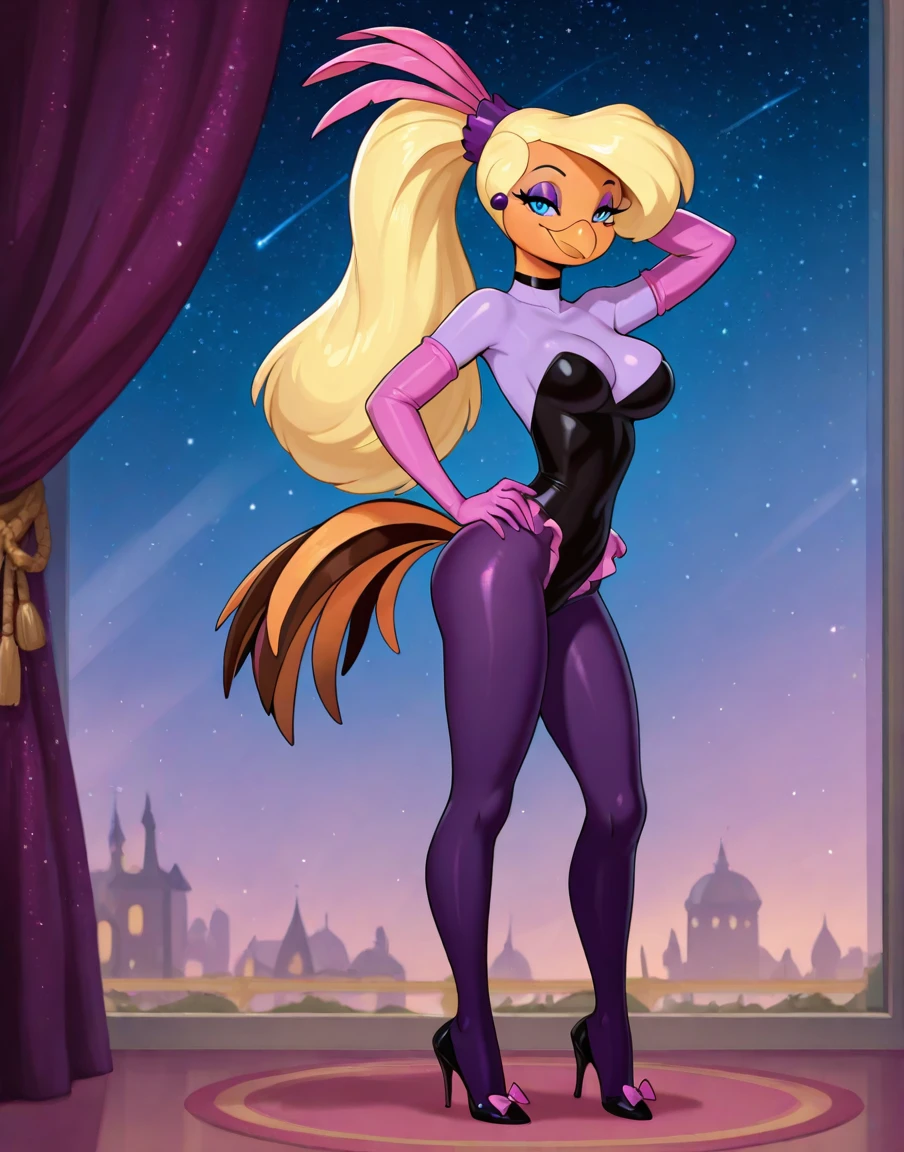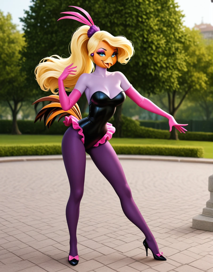As always the character and outfit triggers are up in the trigger words section. You can play around with colors and clothing as much as you want. I will say that changing species is not as consistent. It still tries to add a beak, and I guess it thinks the tail feathers are part of the outfits. But I won't worry too much about that~