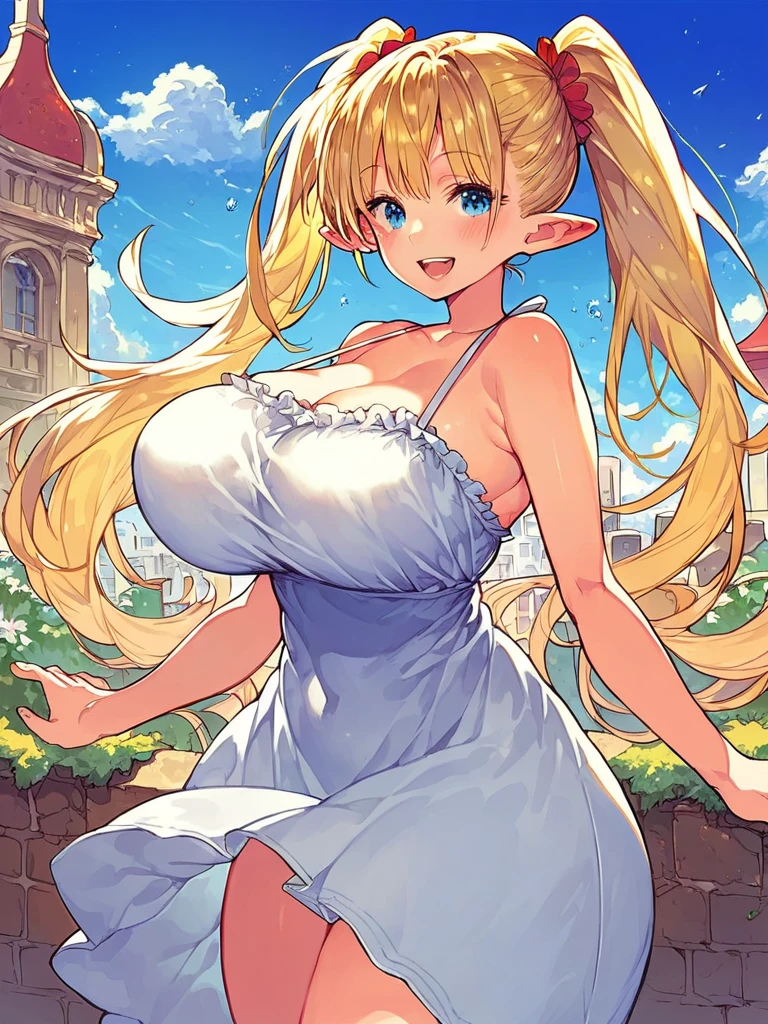 Tansho: tansho fne, blonde hair, blue eyes, bangs, long twintails, pointy ears,