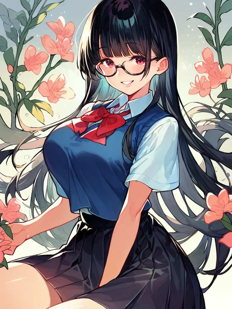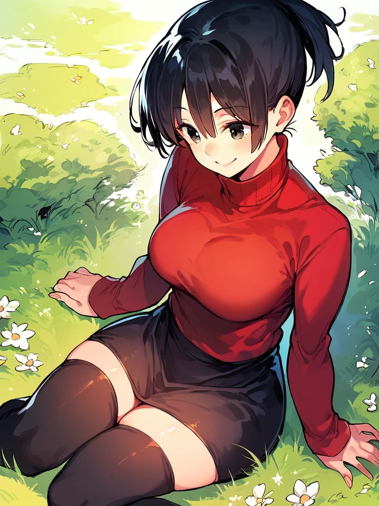 Yuri*: yri fne, black hair, bangs, short ponytail, black eyes,
