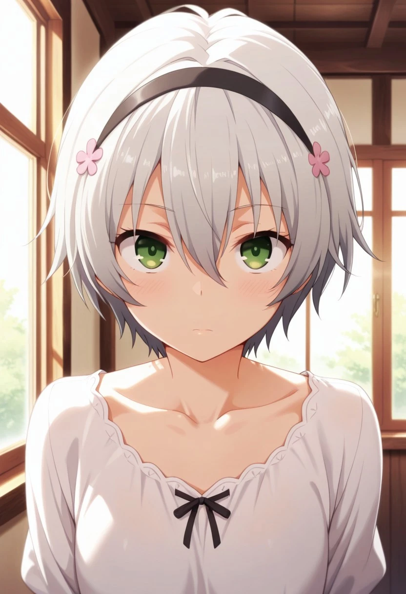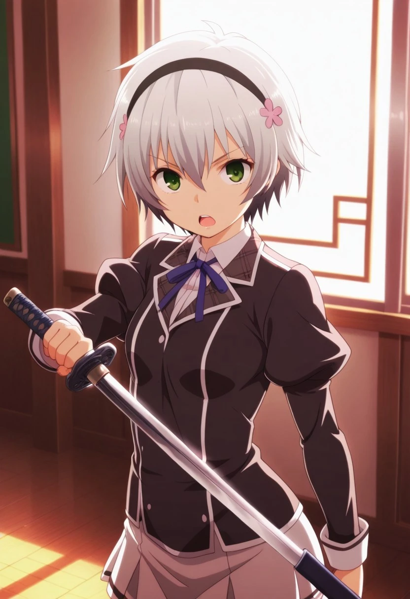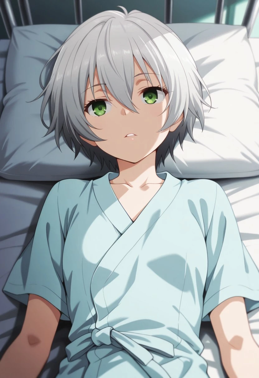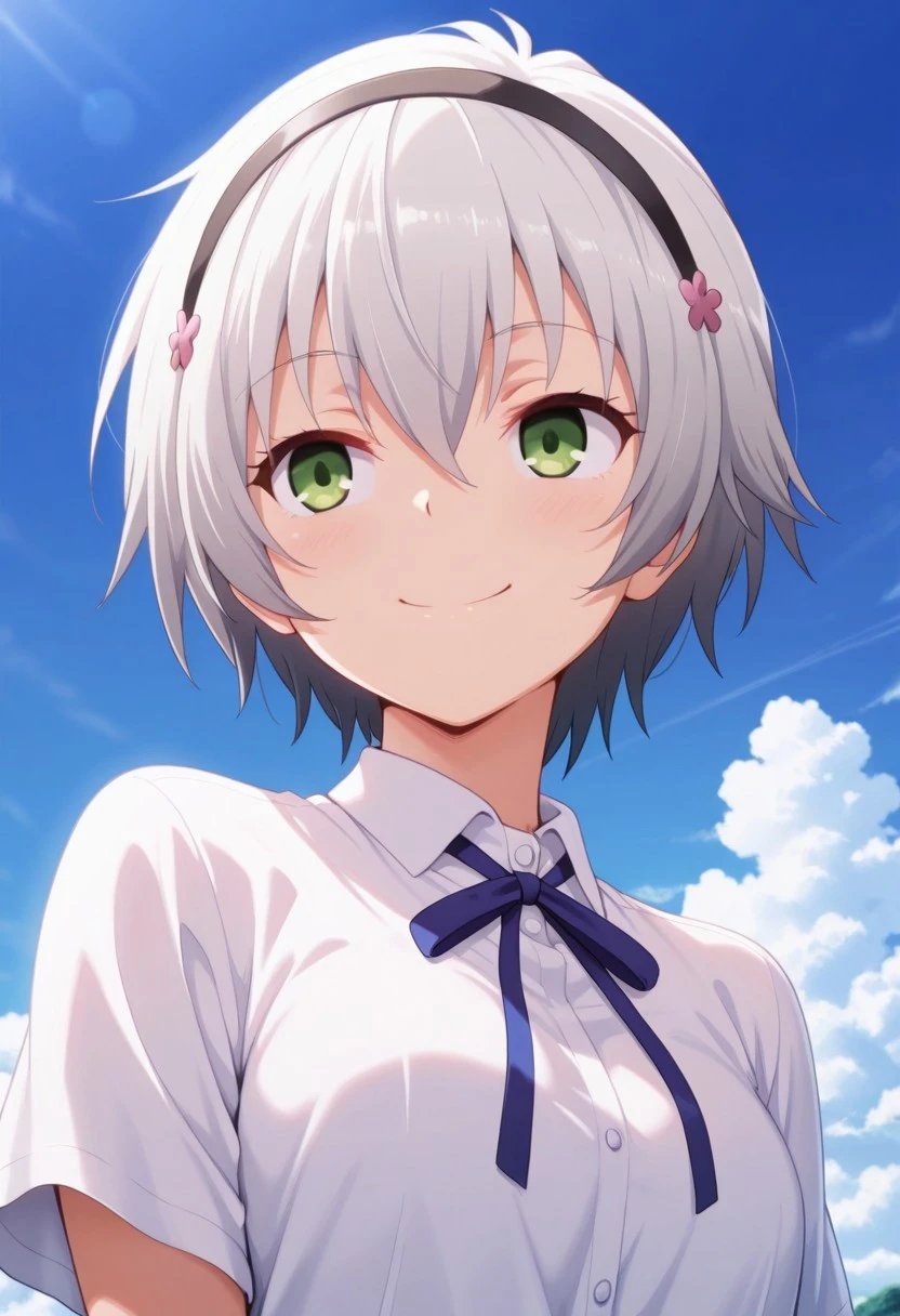 Trigger Words: kurogane shizuku, short hair, green eyes, silver hair