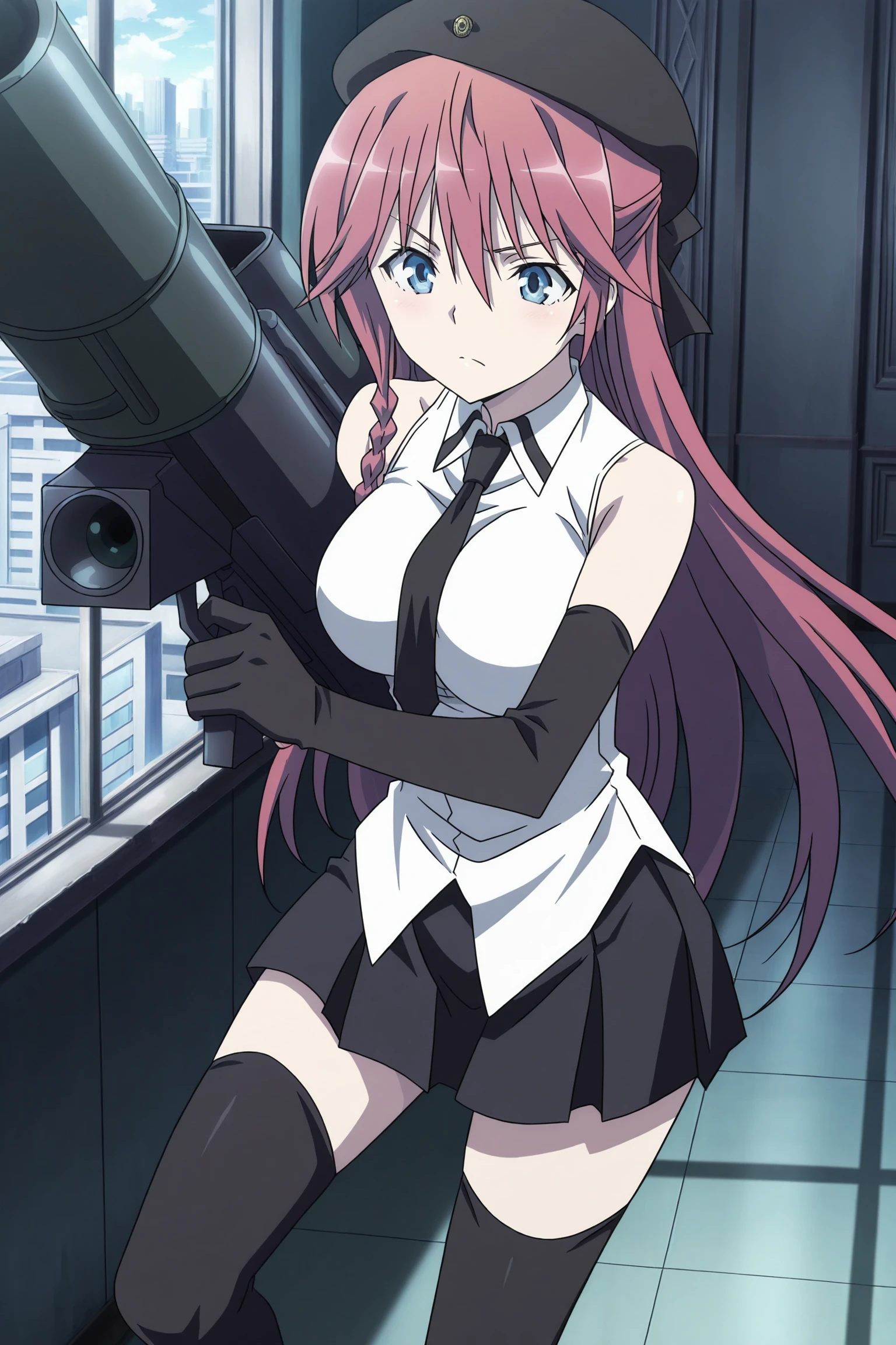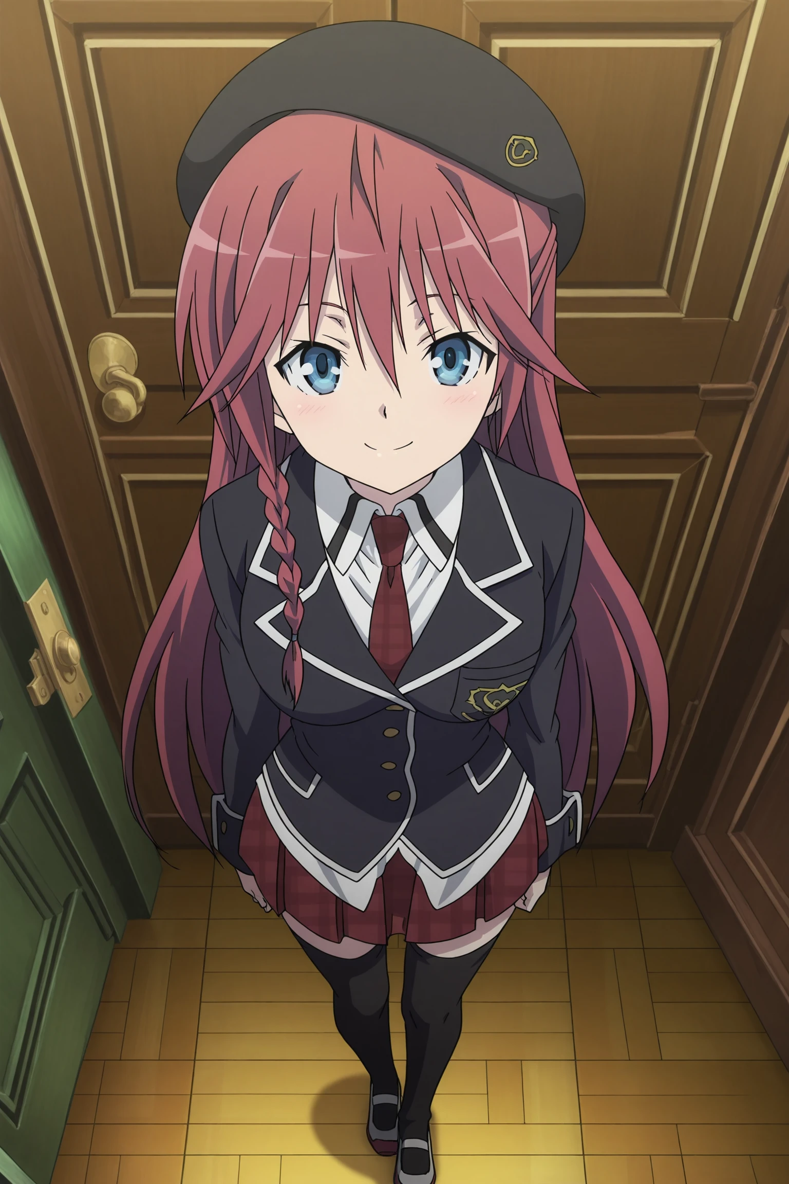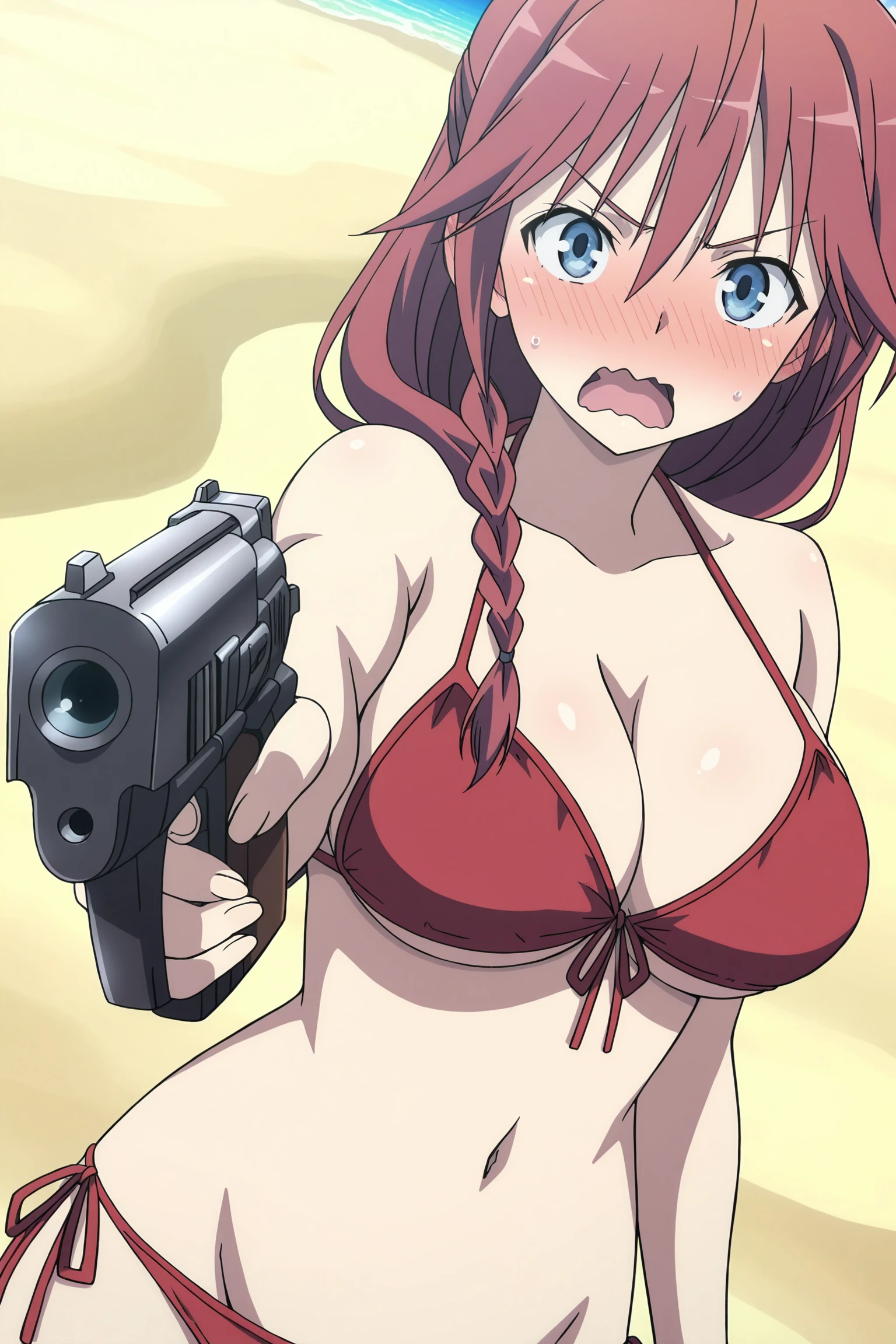 Lilith Asami (character), 1girl, red hair, long hair, braid, blue eyes, large breasts
