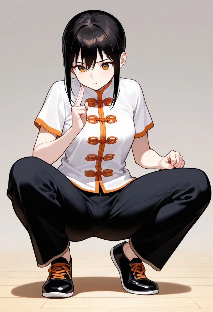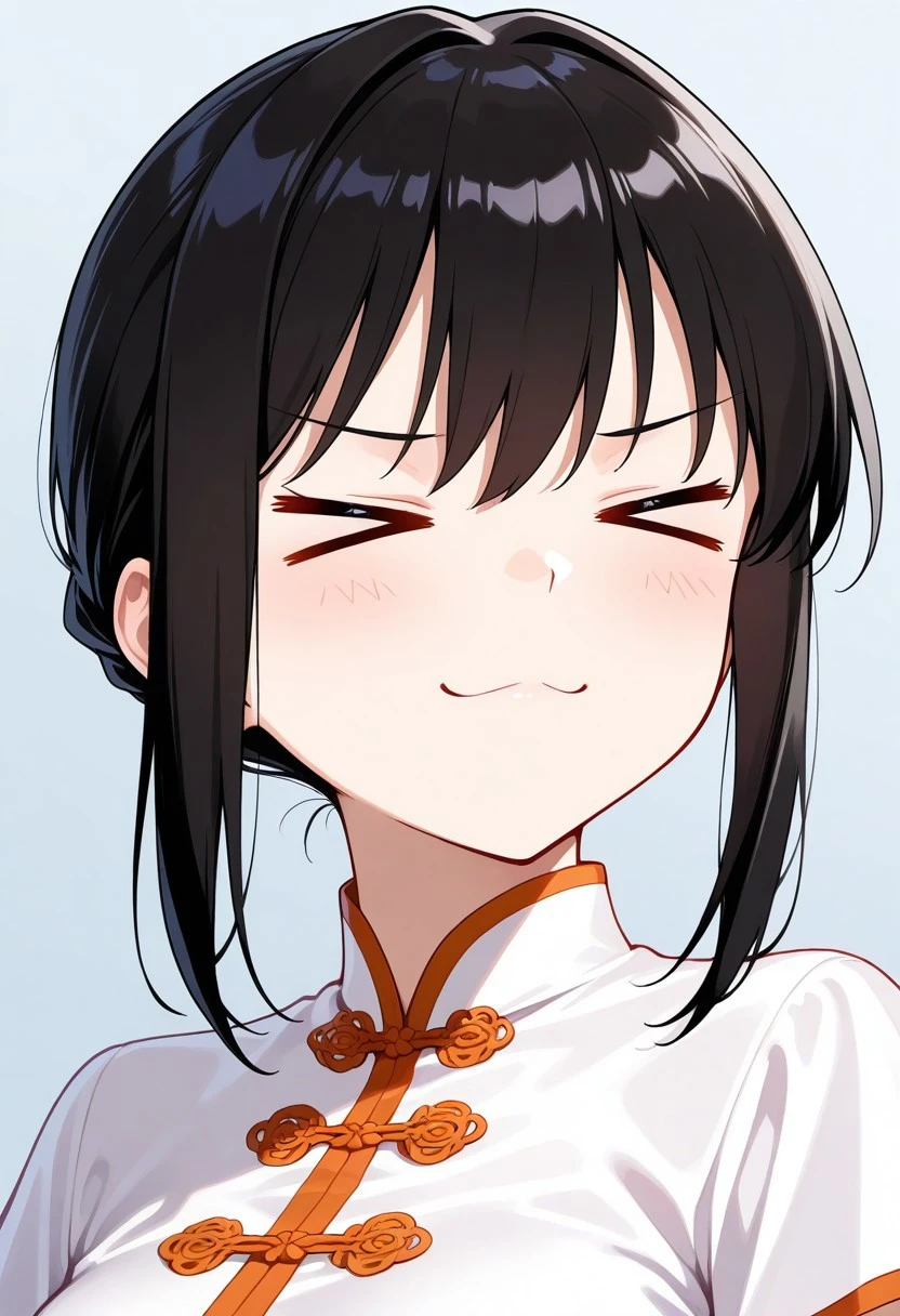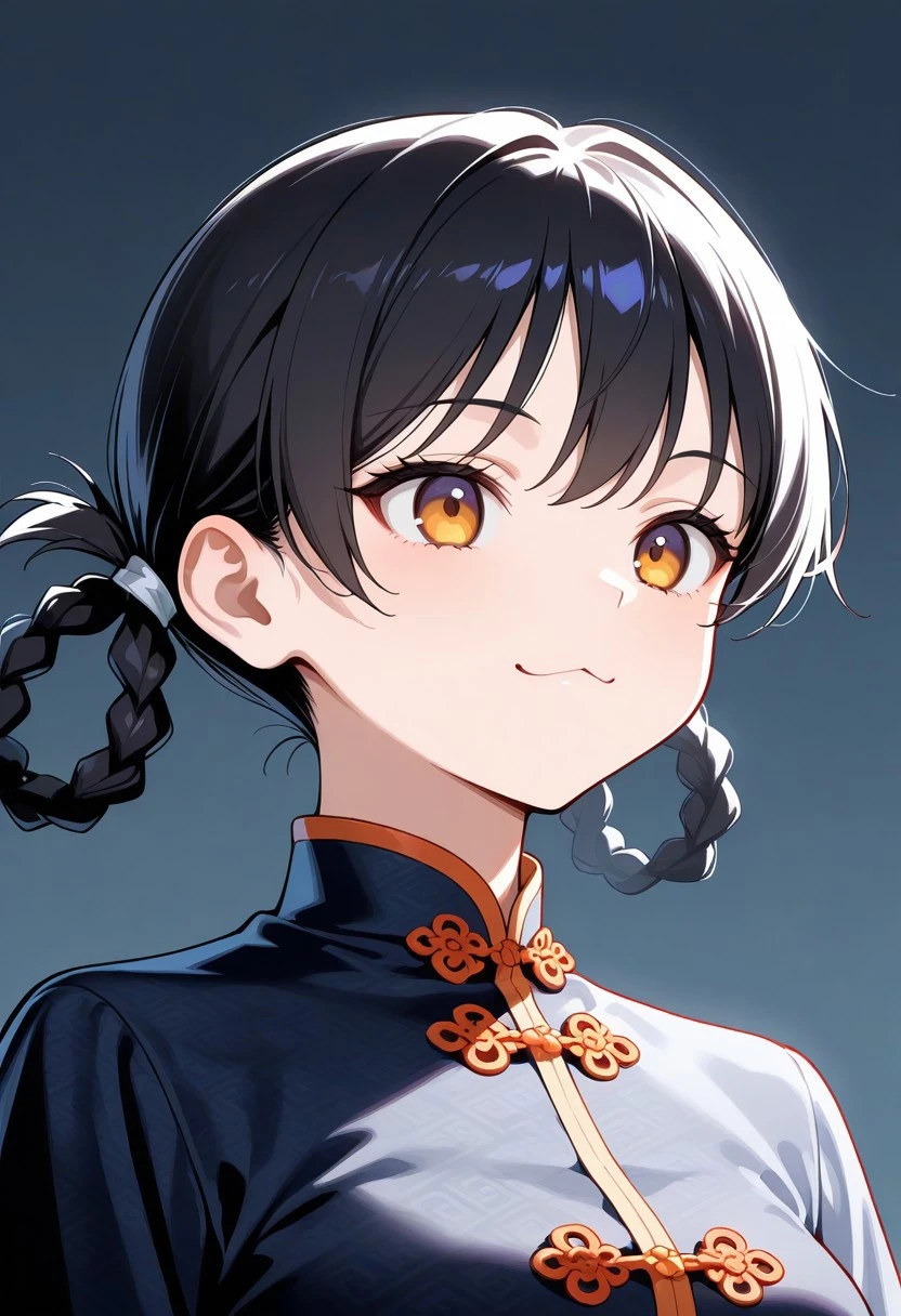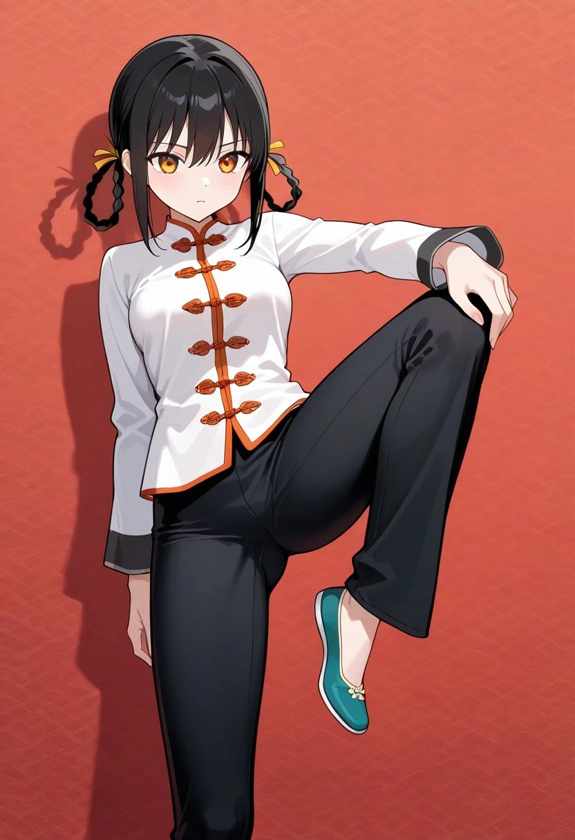 yue, short hair, 1girl, chinese clothes, , solo, chinese pants, hair rings,braided twintails
