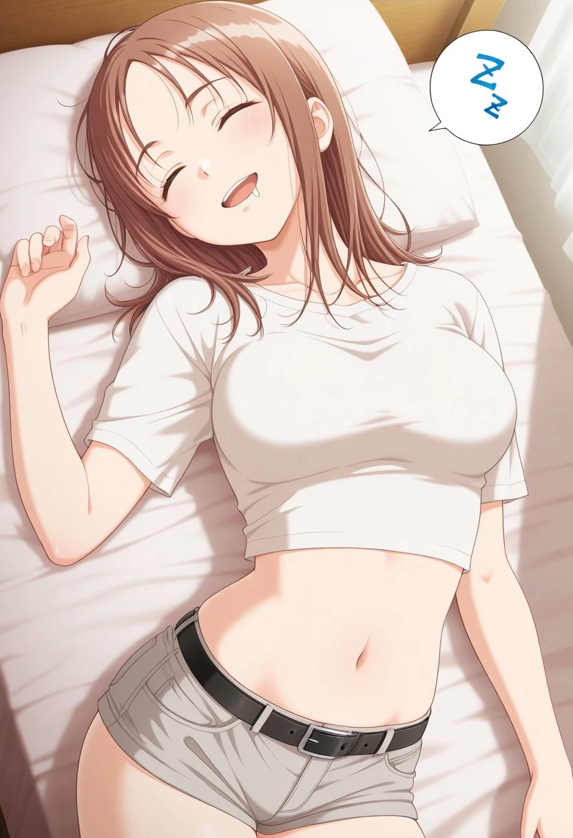 crop top,white crop top,short sleeves,midriff,navel,belt,black belt,shorts,grey shorts,short shorts