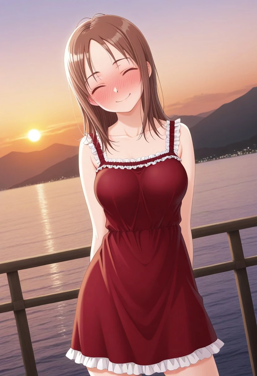 red dress,frills,dress,sundress,red sundress,collarbone,sleeveless