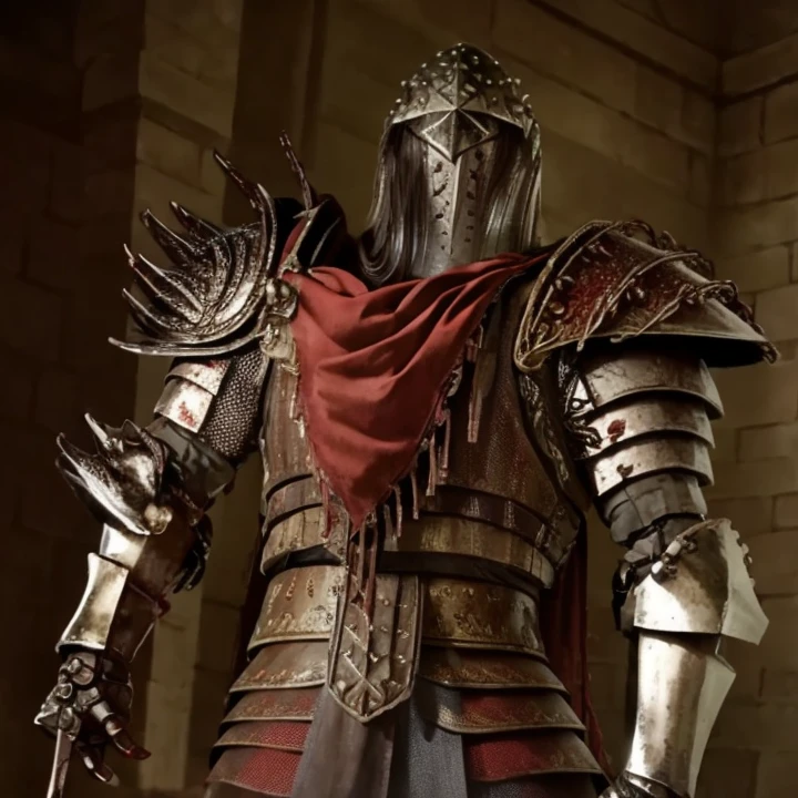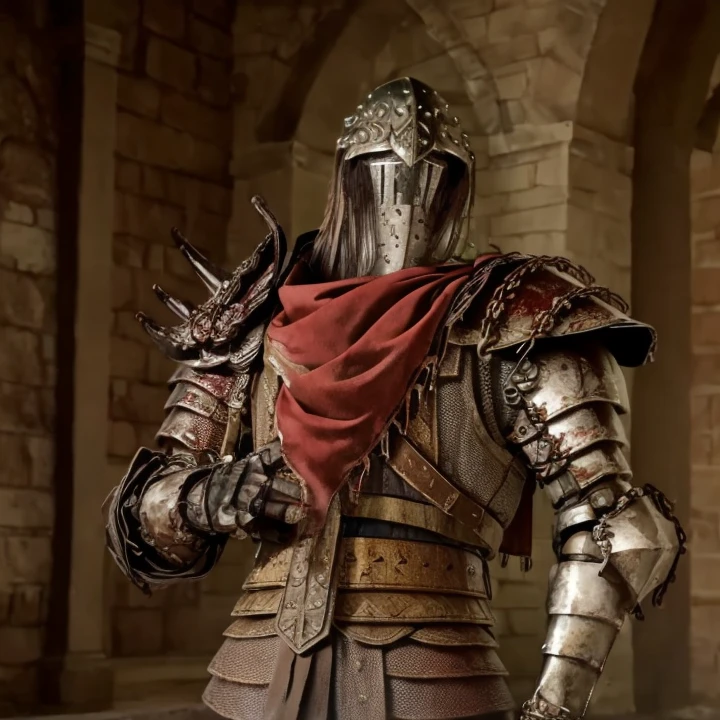 Tags: theknight, helm, red cape, armor, full armor, gauntlets, metal armor pauldrons, shoulder armor,