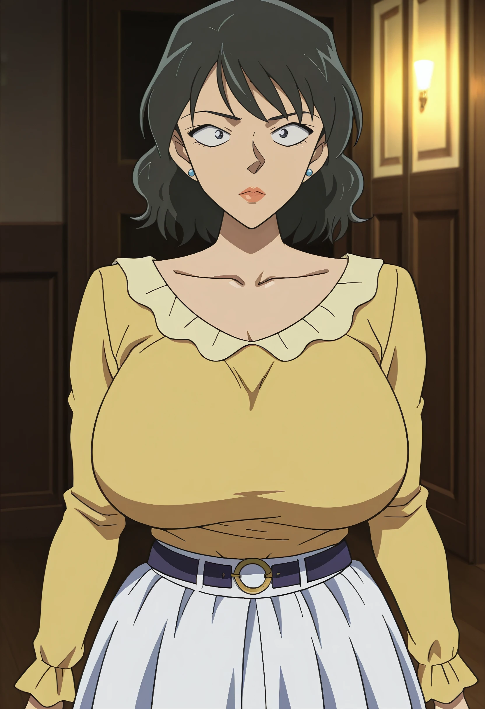 kataokayurie, black hair,black eyes lipstick, earrings, jewelry,