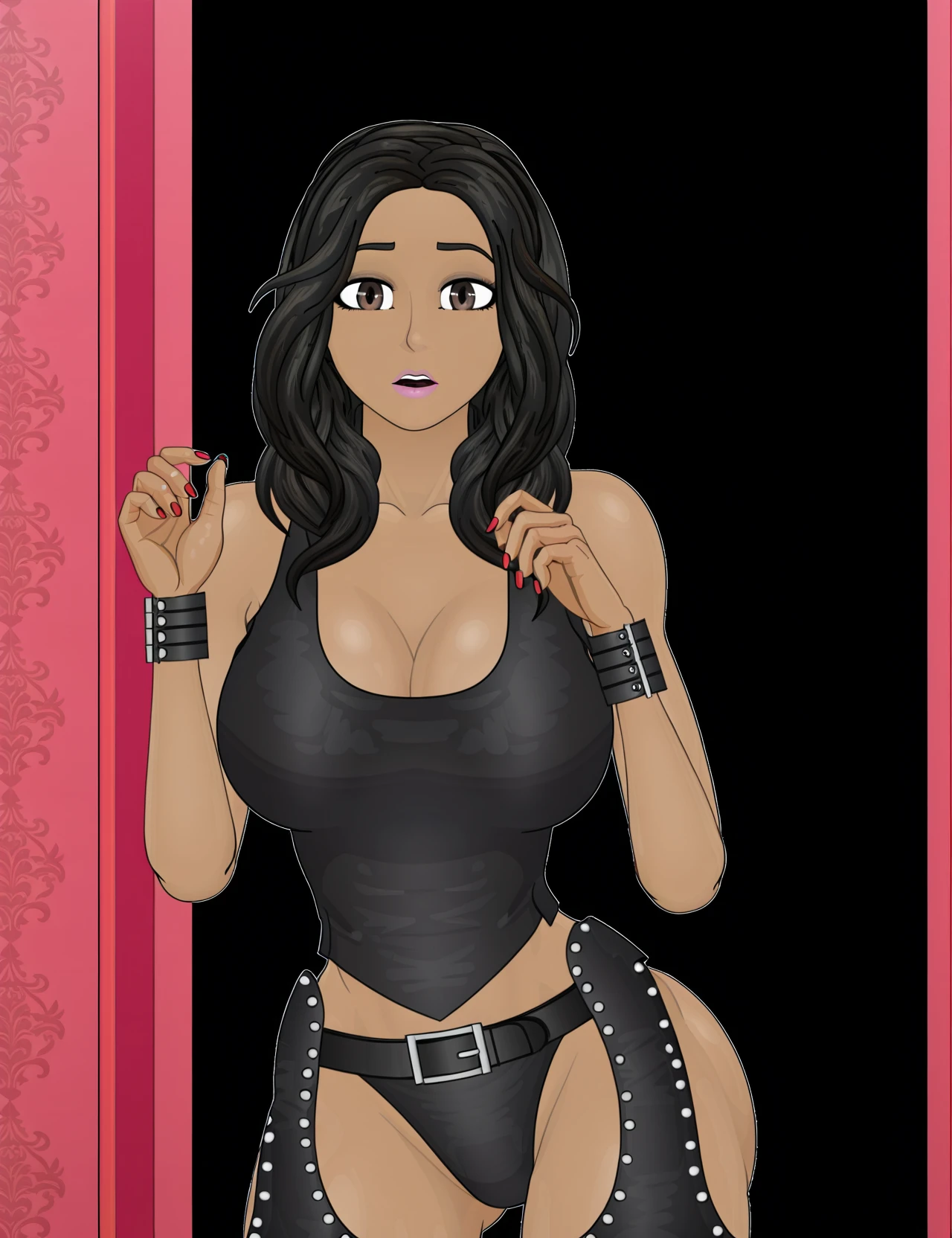 Recomended words: dark ash skin, latina, stripper outfit, necklace