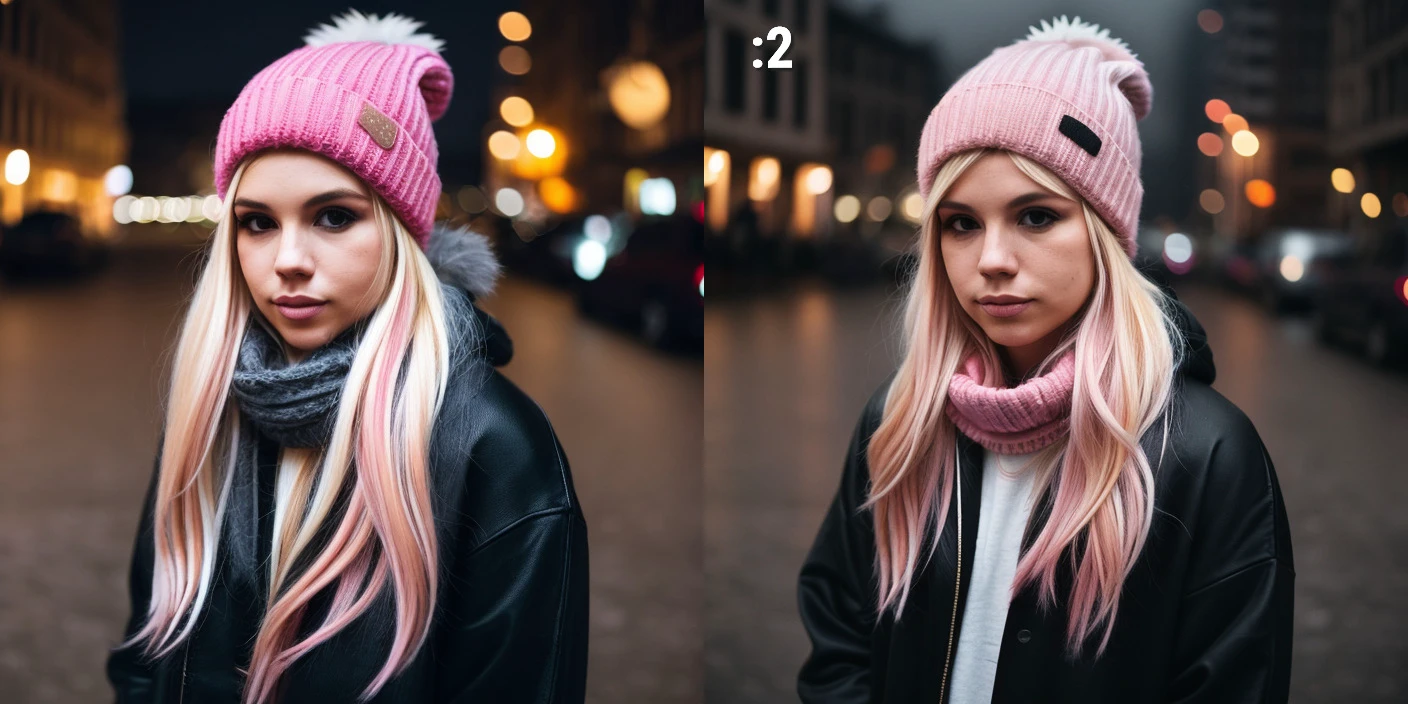 它去除不必要的细节,增加必要的细节,如果生成的是肖像,它会对皮肤、眼睛和头发的纹理工作得更努力。正确地在表面上叠加光影、反射和眩光。透视校正。