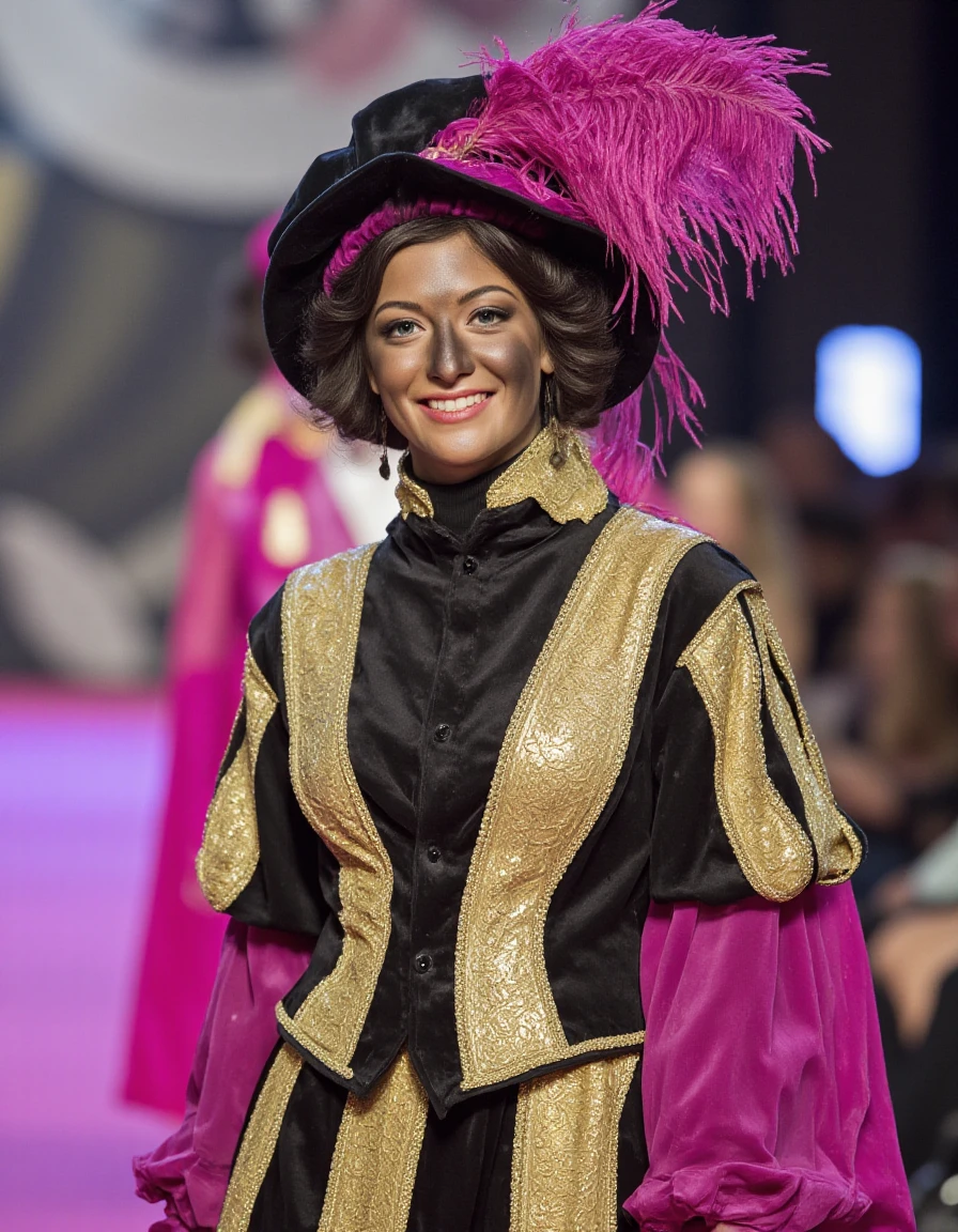 In recent years, however, Piet’s appearance has evolved to address the controversies surrounding racial stereotyping. Today, Roetveeg Piet (Soot Piet) is a popular adaptation that maintains the festive attire while adding only subtle smudges of soot on the face, suggesting the marks left from climbing down chimneys, in line with the character's backstory of delivering gifts. This new portrayal is seen as a more culturally sensitive representation, maintaining Piet's role as a helper of Sinterklaas while honoring the character's roots in Dutch holiday tradition.