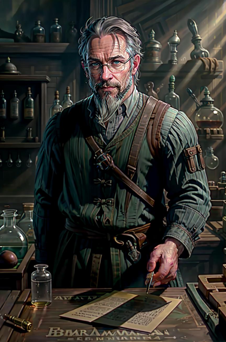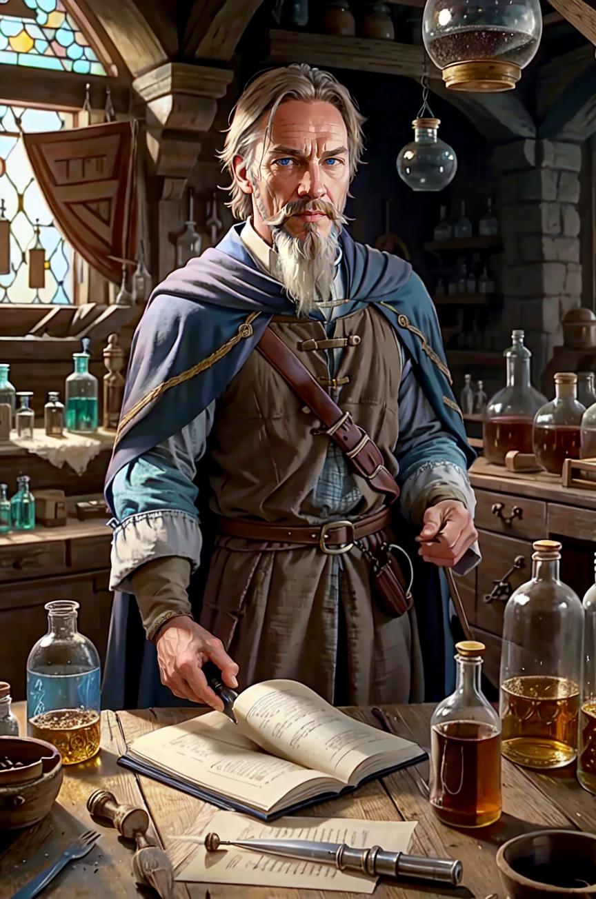 This is a LORA for creating lab assistances for medieval rpgs. The following trigger words work with the LORA: