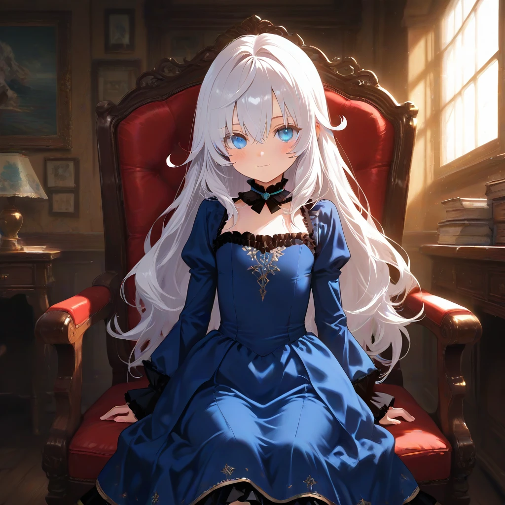 leticia, long hair, silver hair, blue eyes, blue dress,
